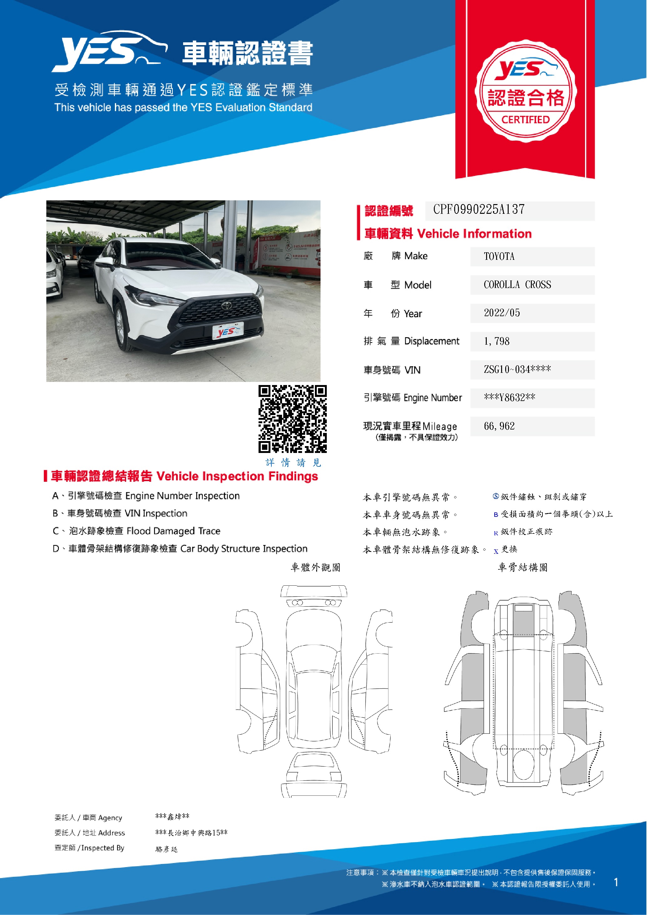 本車已由YES專業查定師完成 153 項檢測
