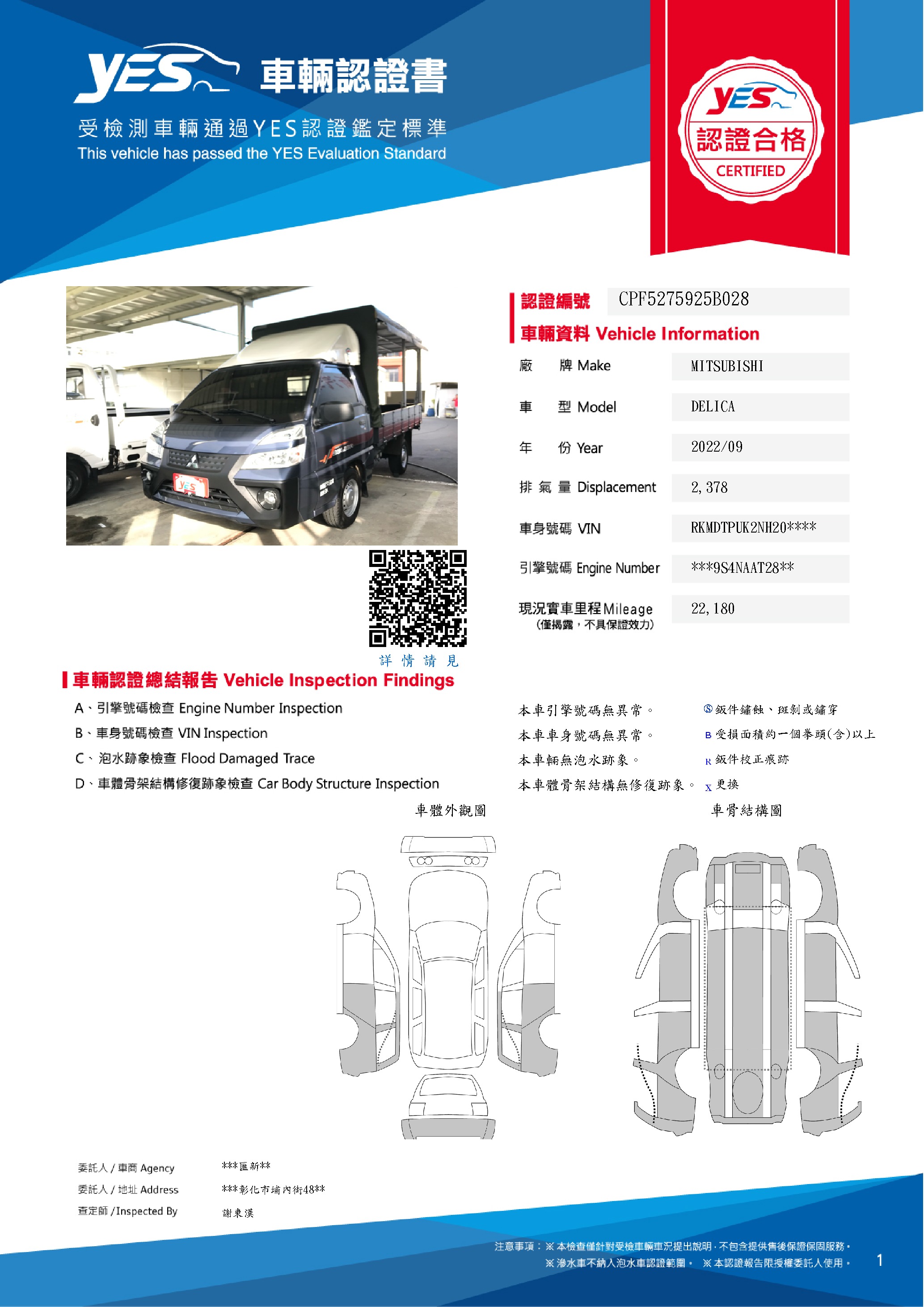 本車已由YES專業查定師完成 153 項檢測