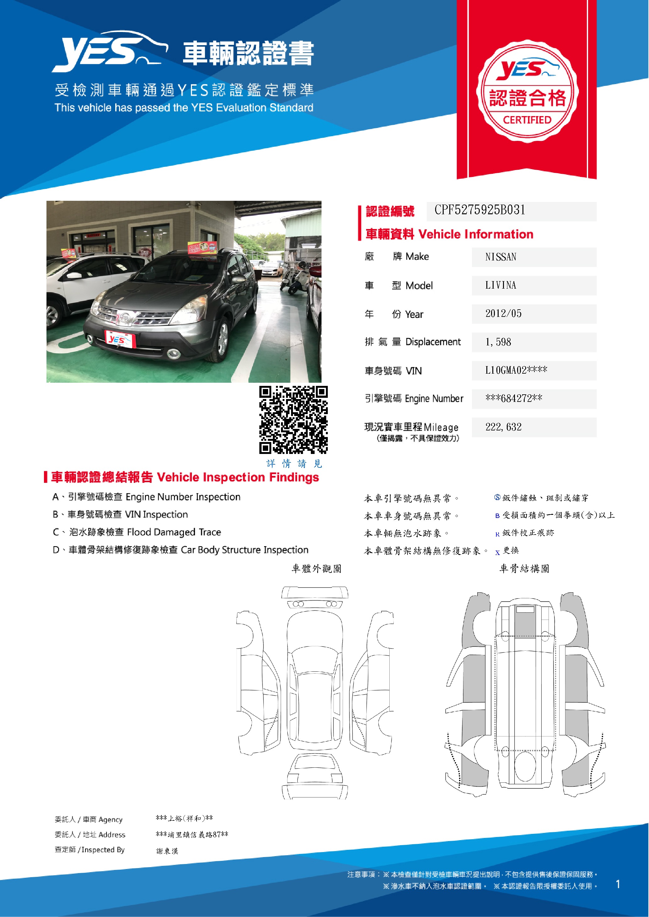 本車已由YES專業查定師完成 153 項檢測