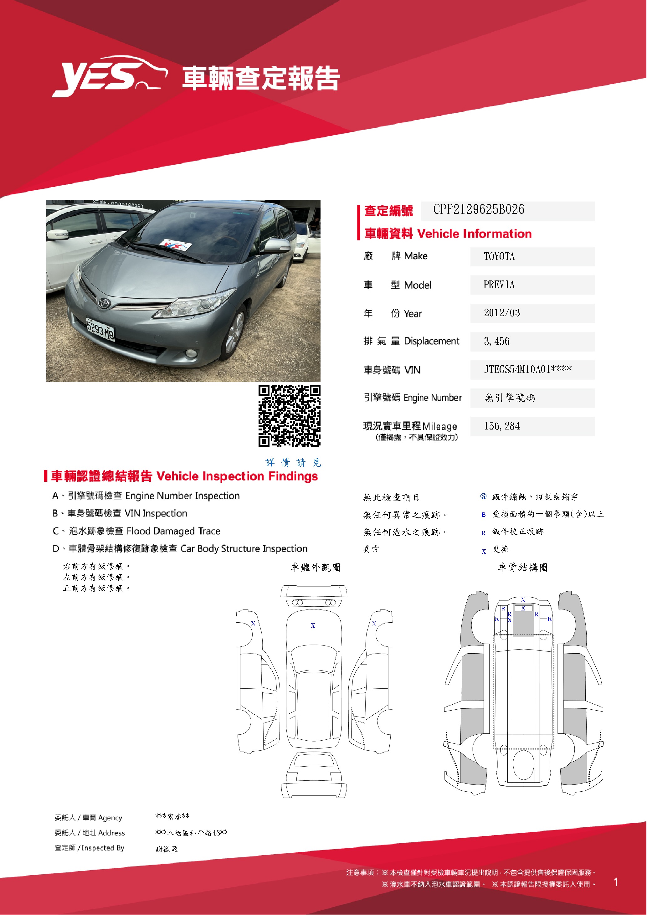 本車已由YES專業查定師完成 153 項檢測