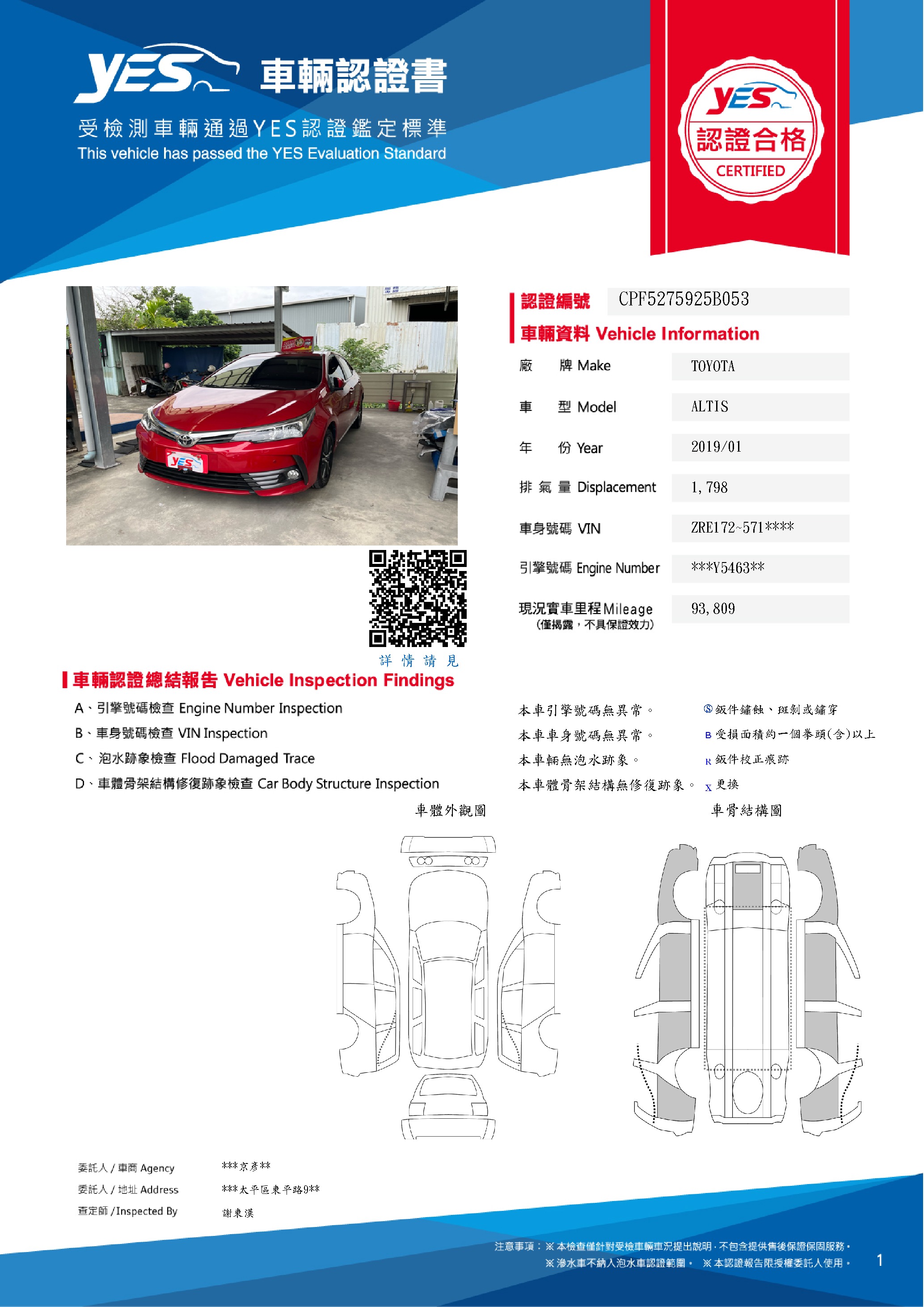 本車已由YES專業查定師完成 153 項檢測