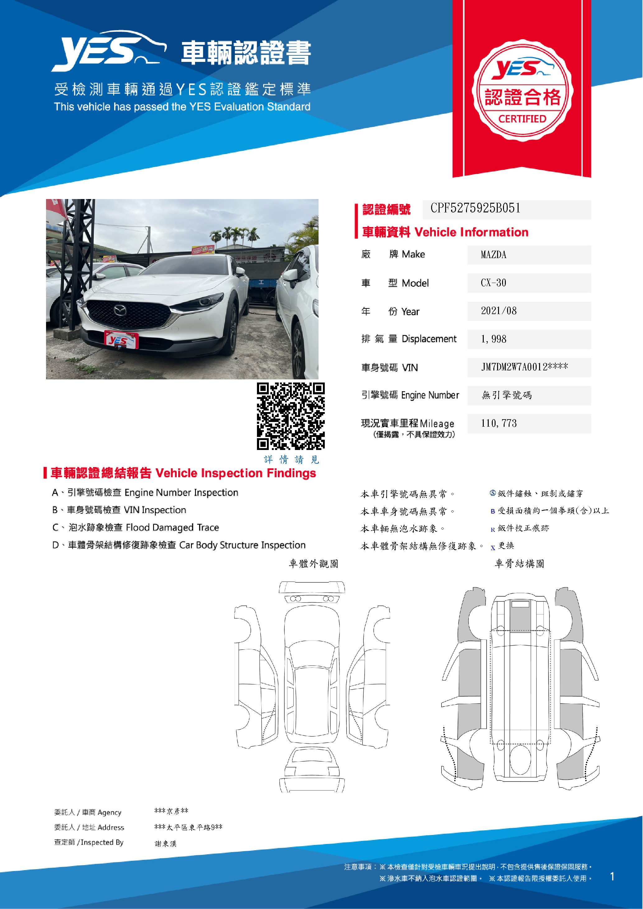 本車已由YES專業查定師完成 153 項檢測