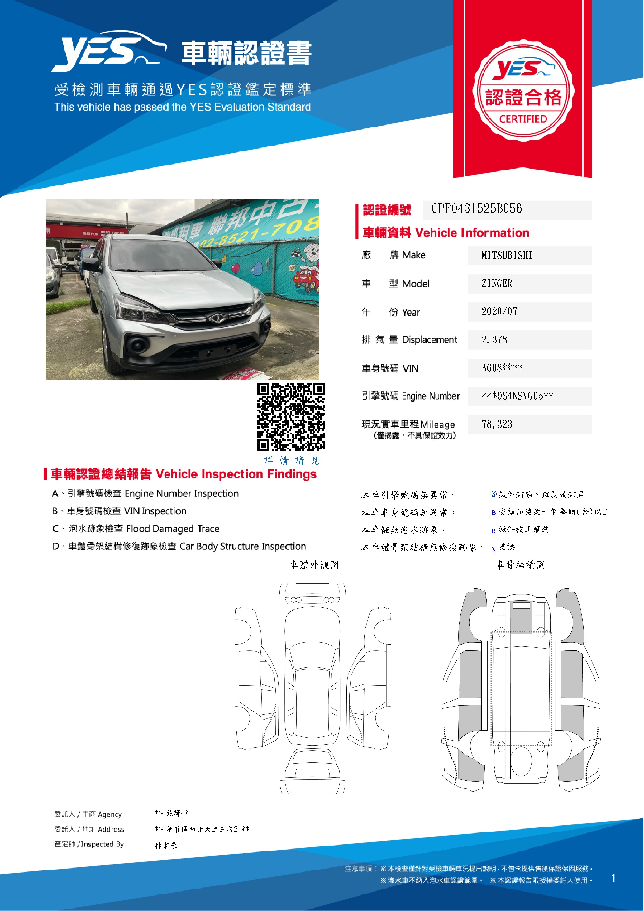 本車已由YES專業查定師完成 153 項檢測