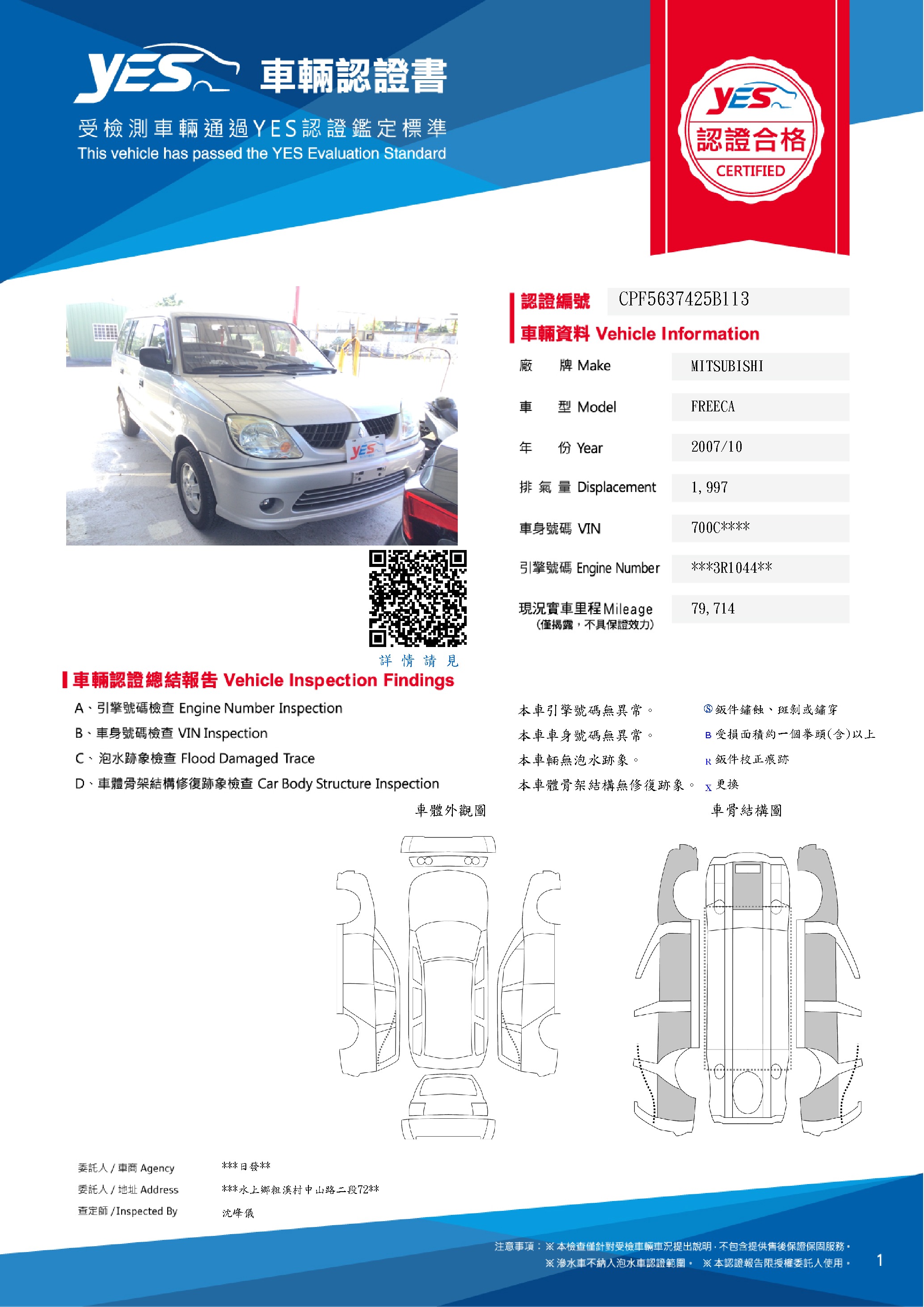 本車已由YES專業查定師完成 153 項檢測