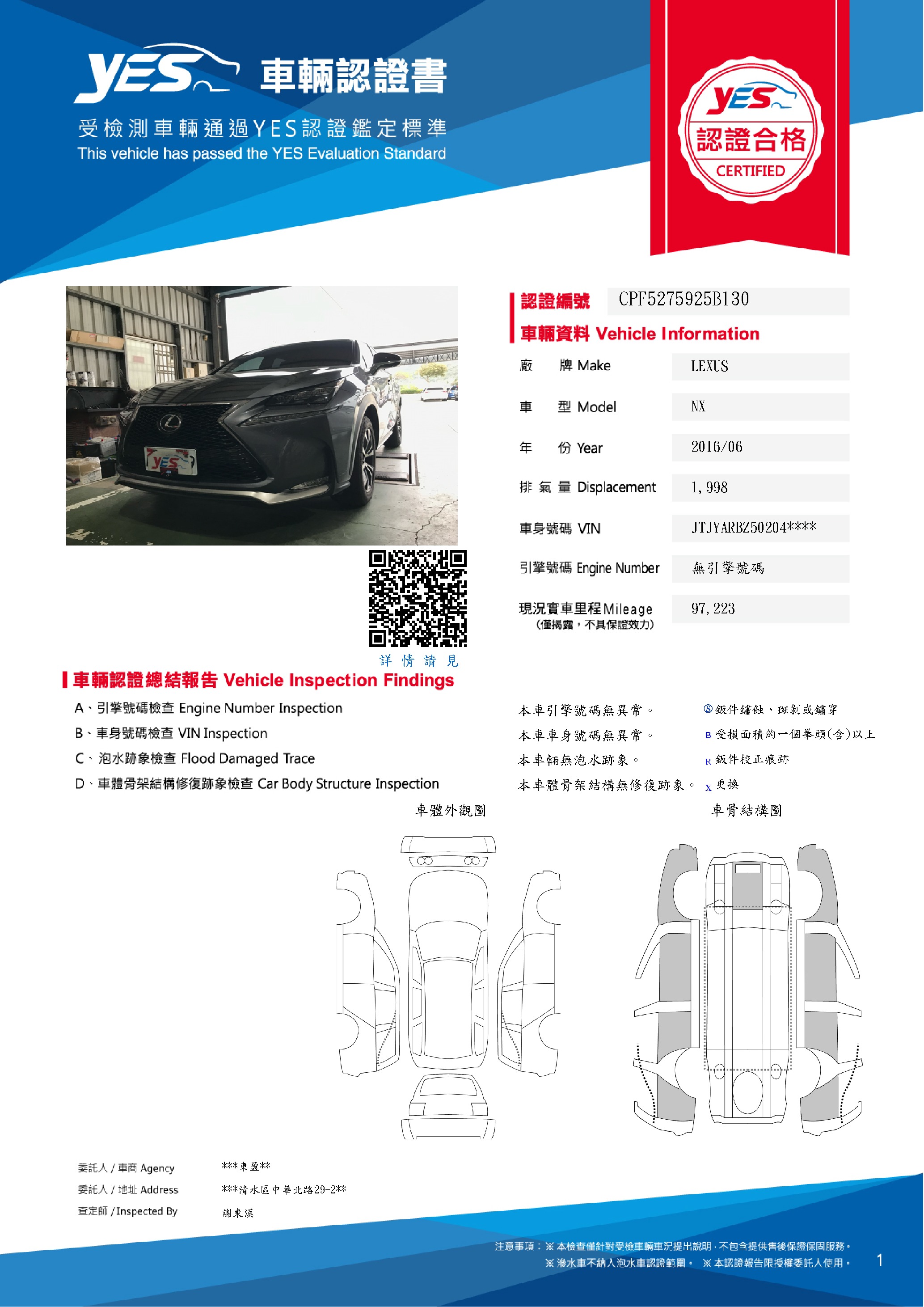 本車已由YES專業查定師完成 153 項檢測