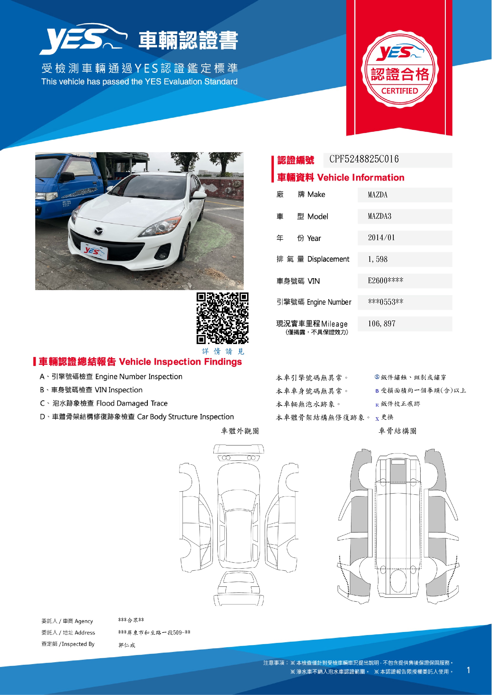 本車已由YES專業查定師完成 153 項檢測