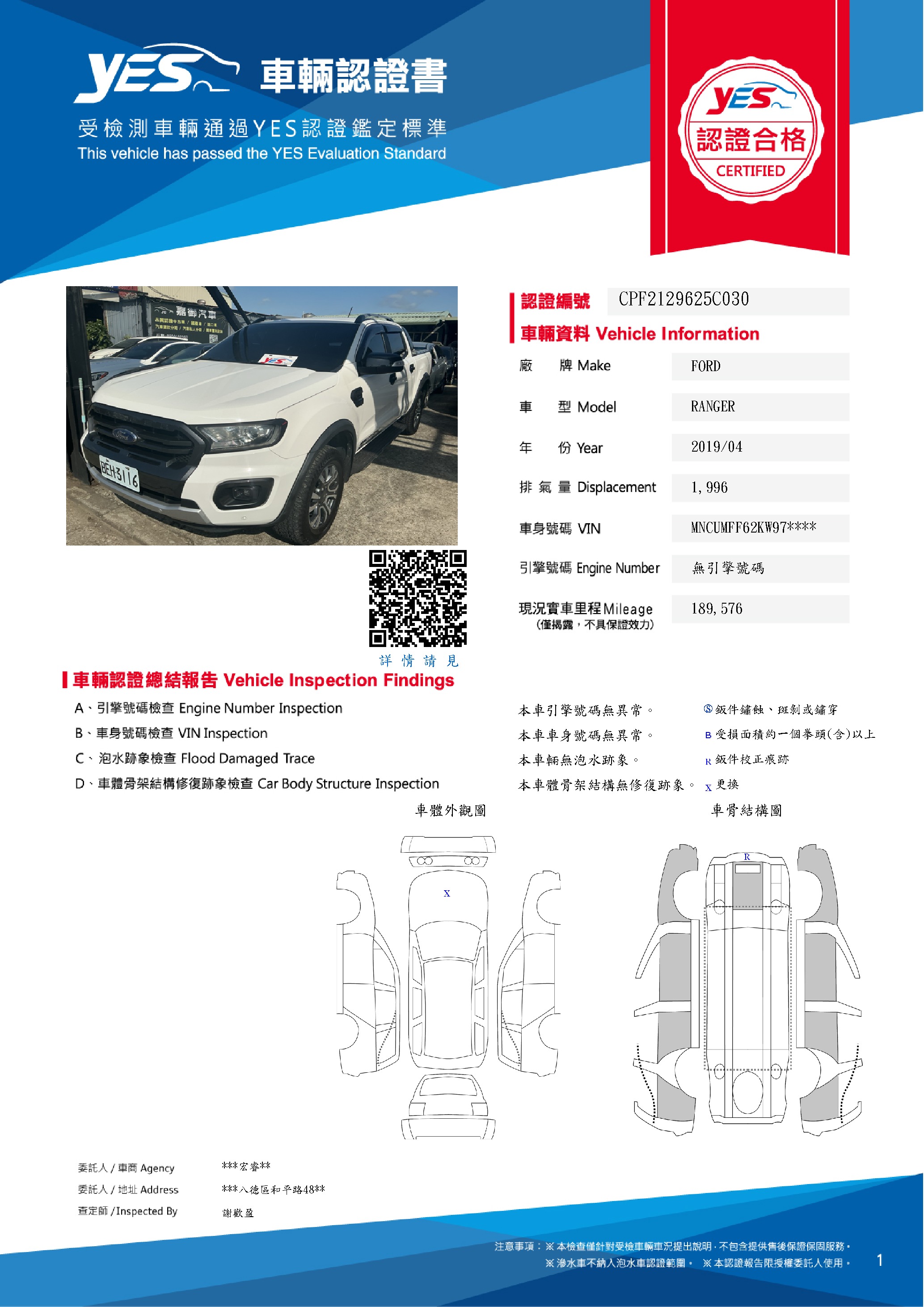 本車已由YES專業查定師完成 153 項檢測
