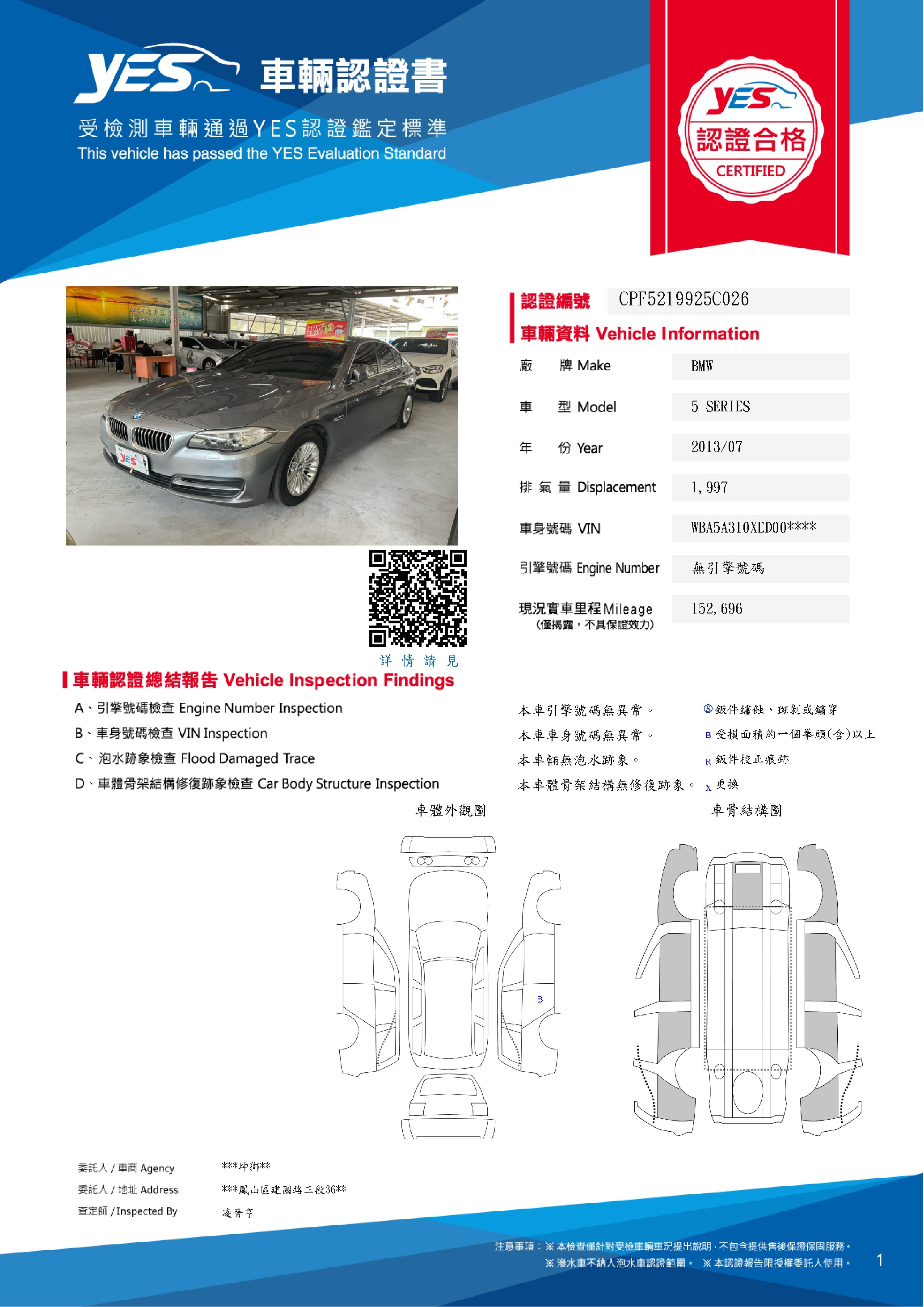 本車已由YES專業查定師完成 153 項檢測