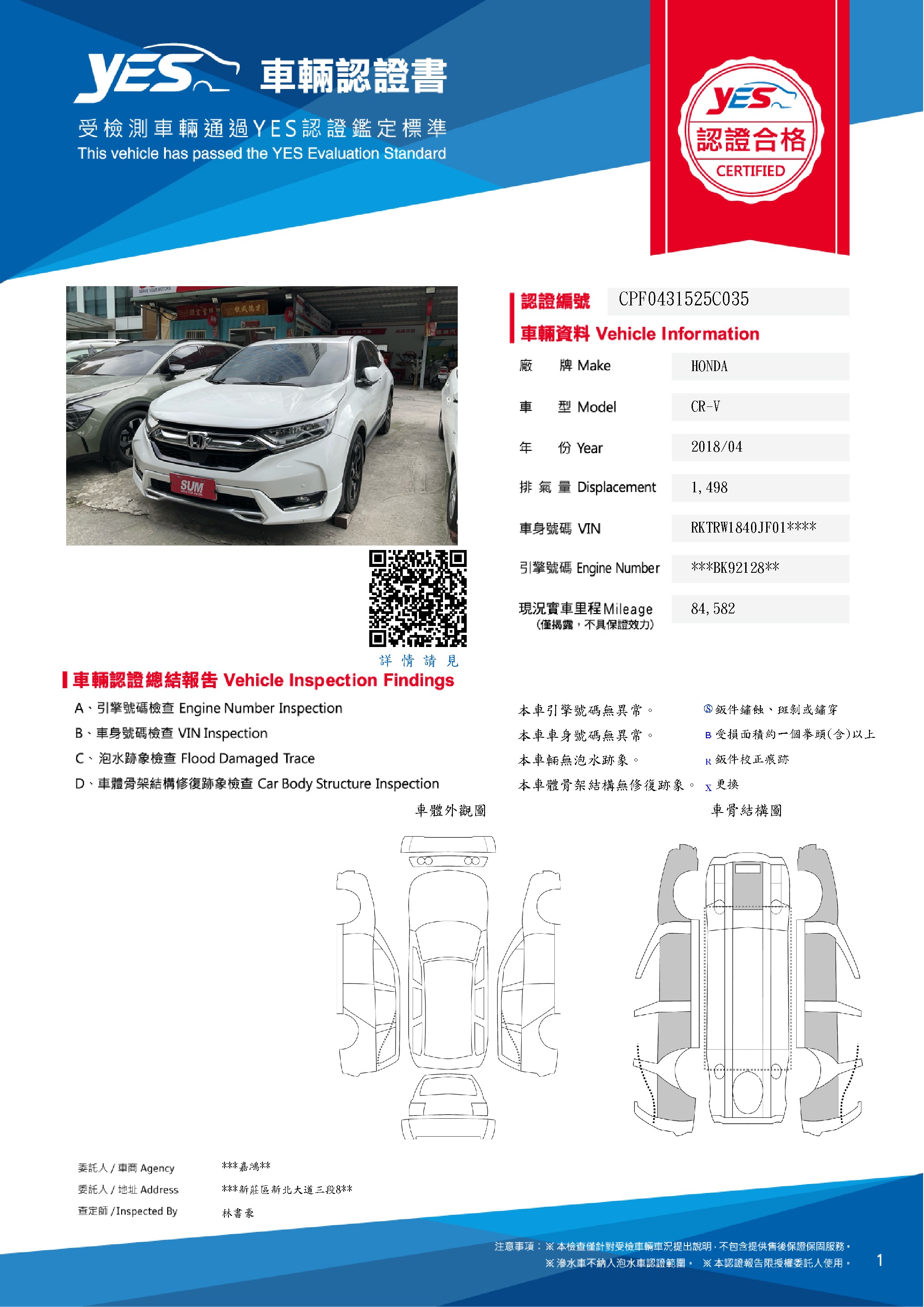 本車已由YES專業查定師完成 153 項檢測