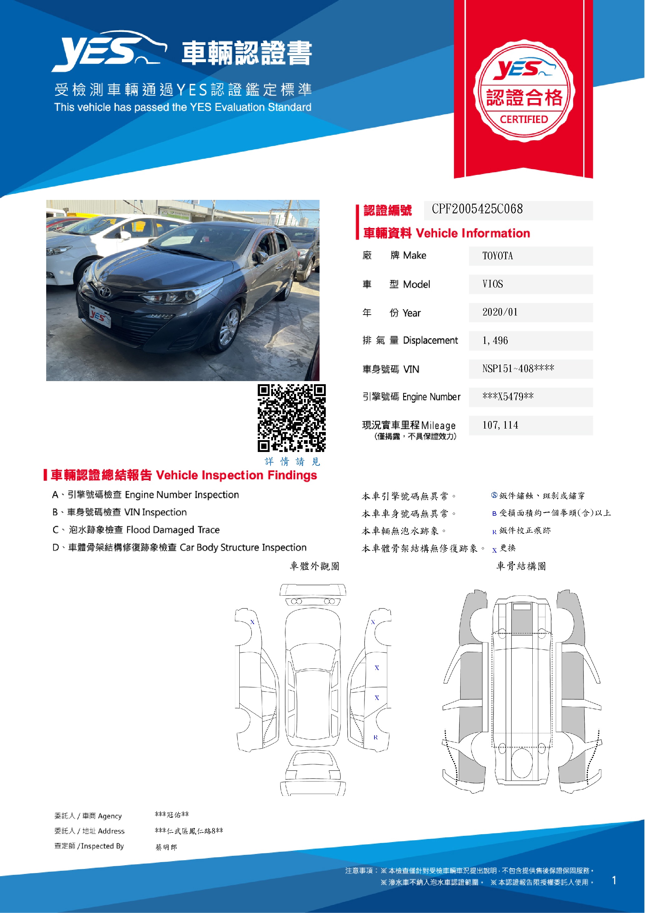 本車已由YES專業查定師完成 153 項檢測