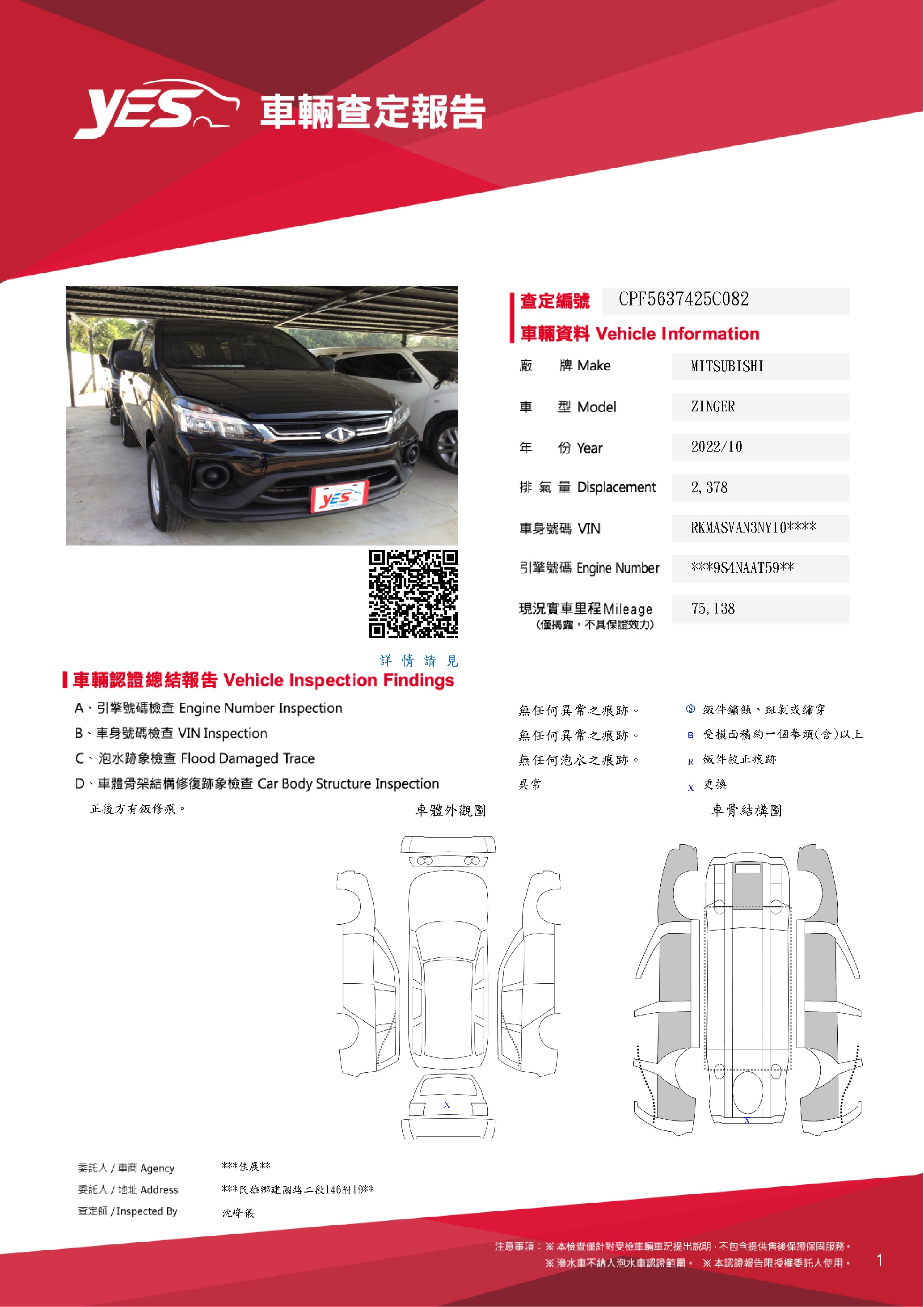 本車已由YES專業查定師完成 153 項檢測