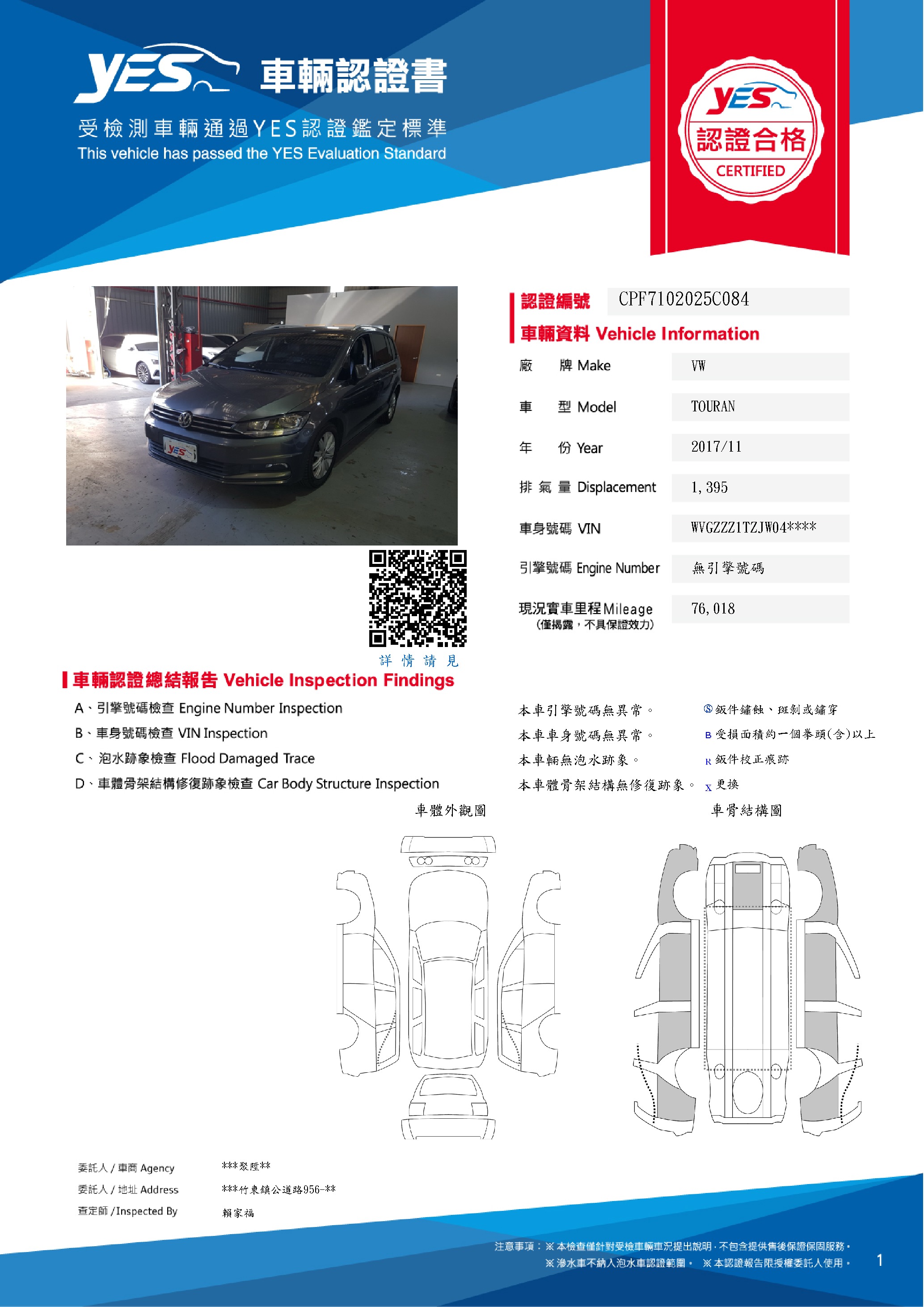 本車已由YES專業查定師完成 153 項檢測