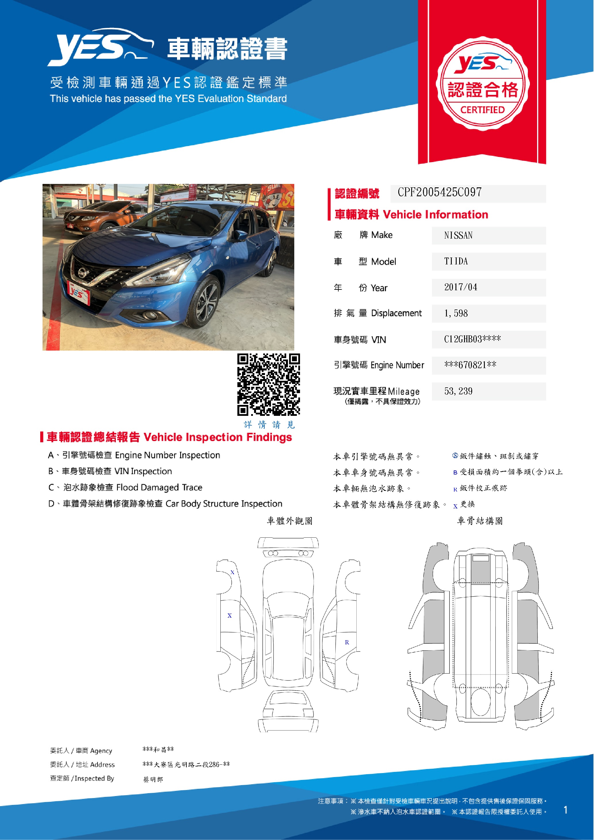 本車已由YES專業查定師完成 153 項檢測
