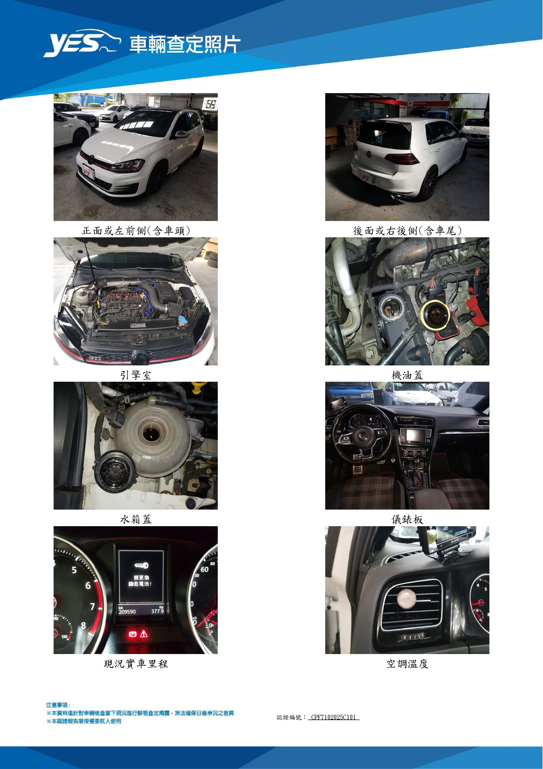 本車已由YES專業查定師完成 153 項檢測