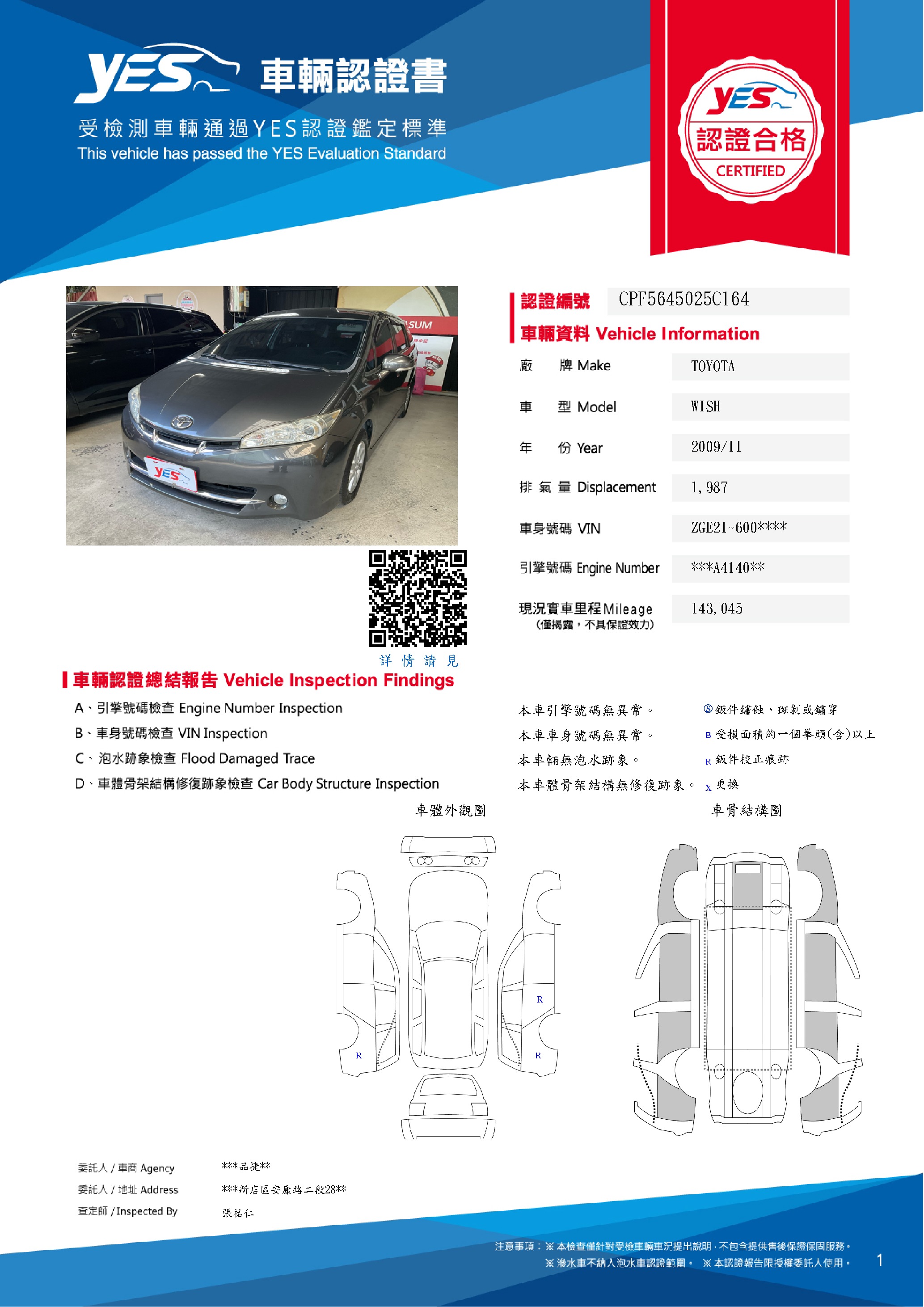 本車已由YES專業查定師完成 153 項檢測