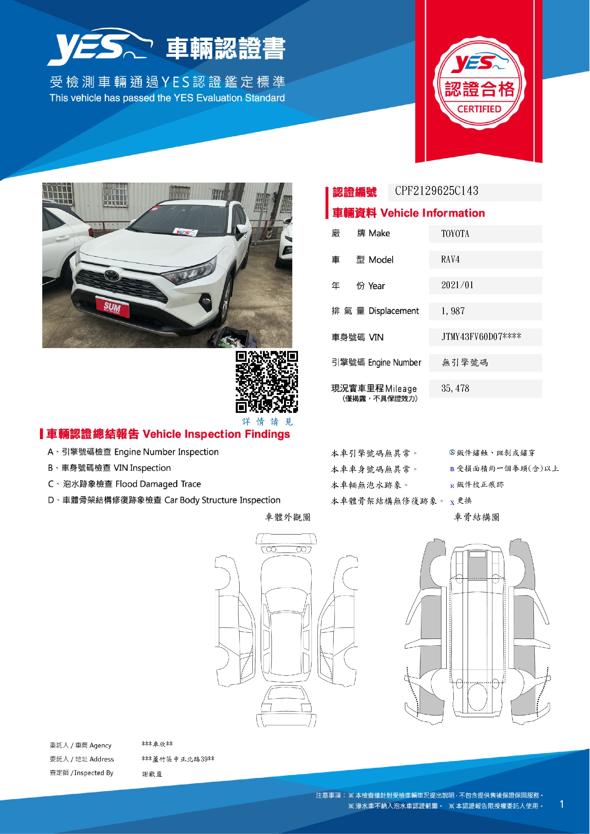 本車已由YES專業查定師完成 153 項檢測