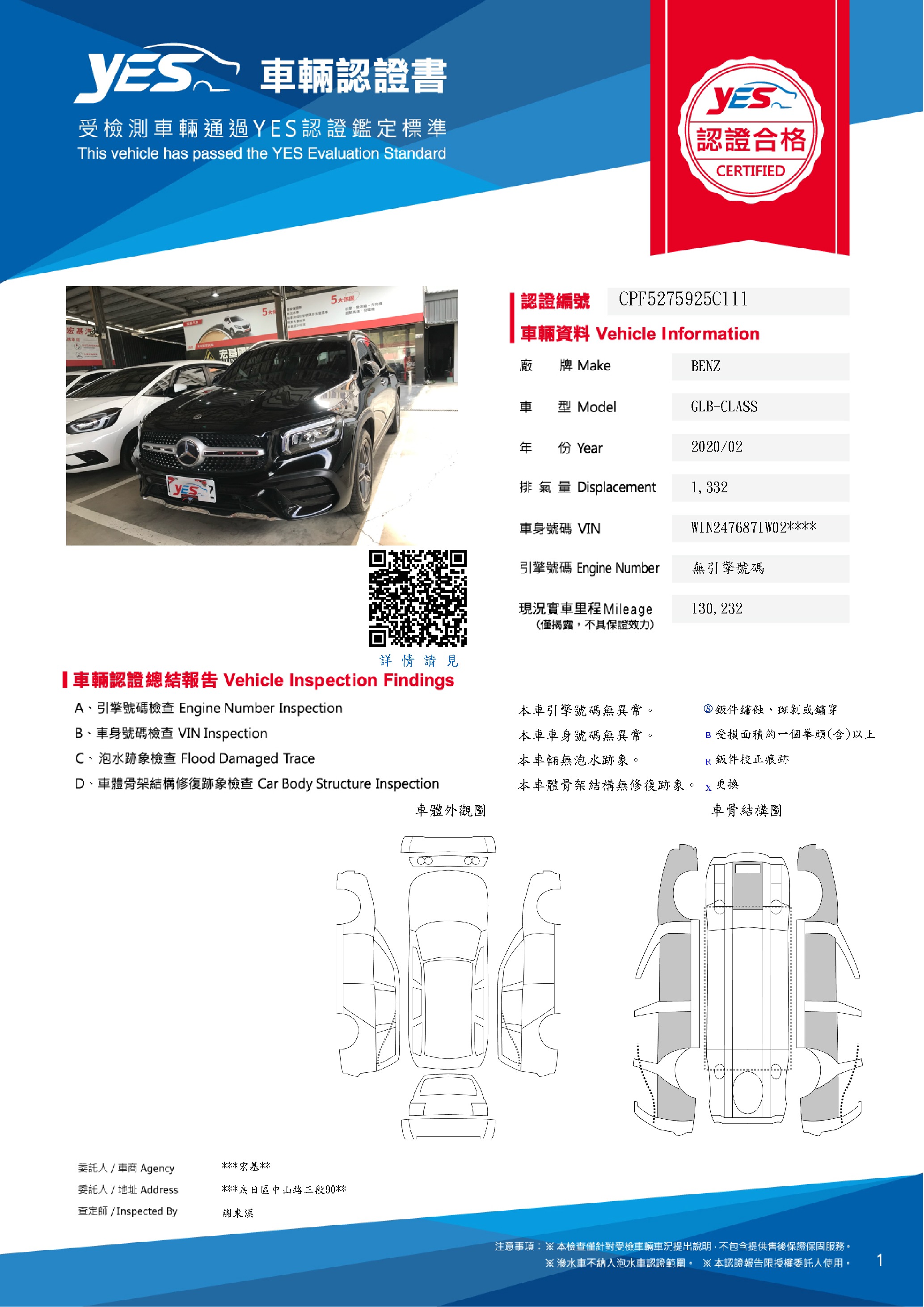 本車已由YES專業查定師完成 153 項檢測