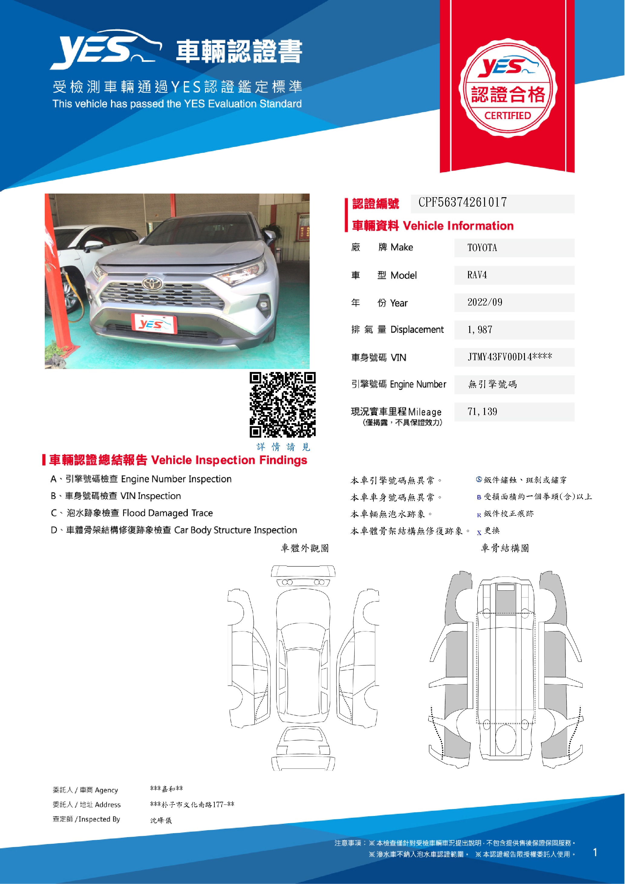 本車已由YES專業查定師完成 153 項檢測