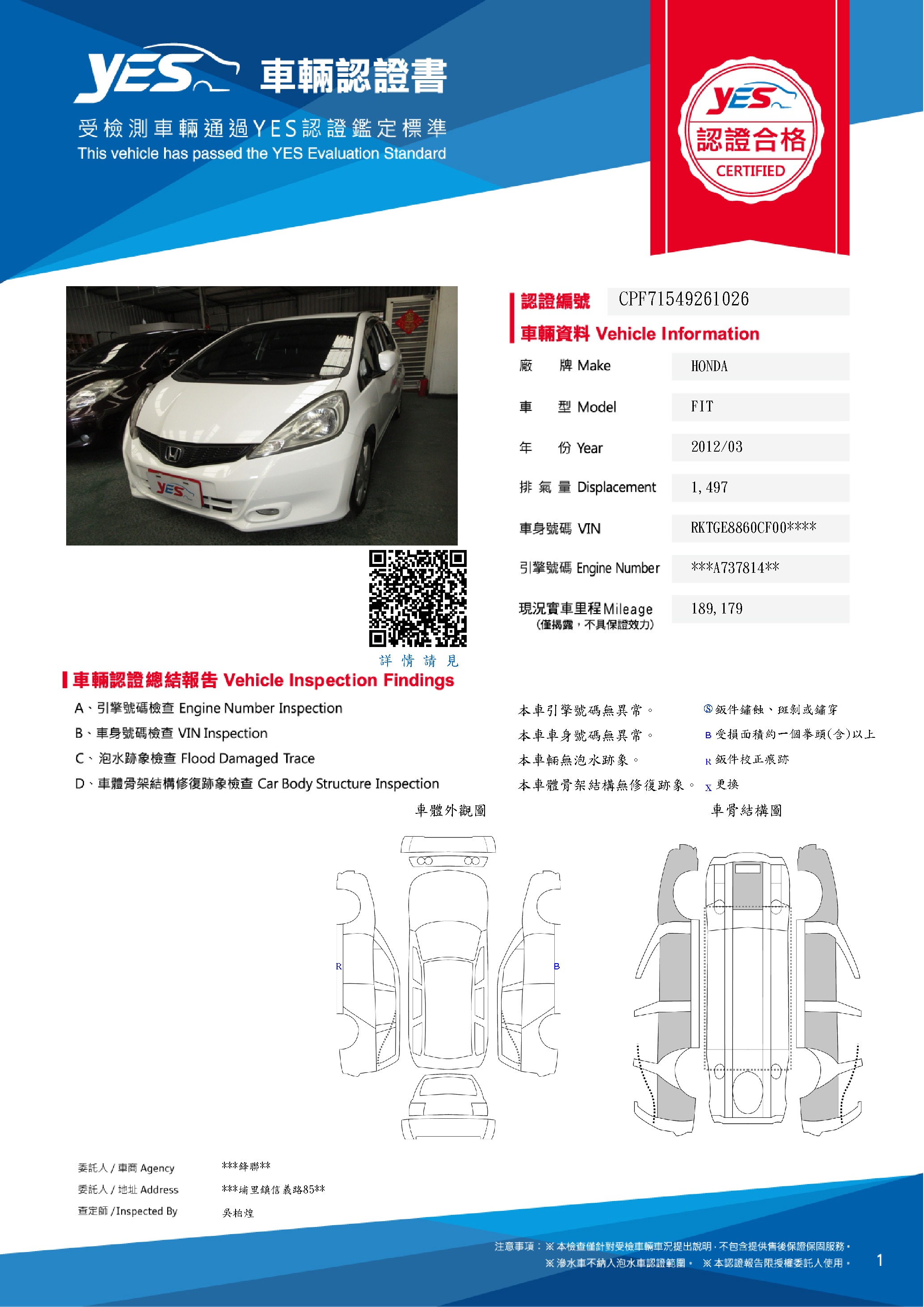 本車已由YES專業查定師完成 153 項檢測