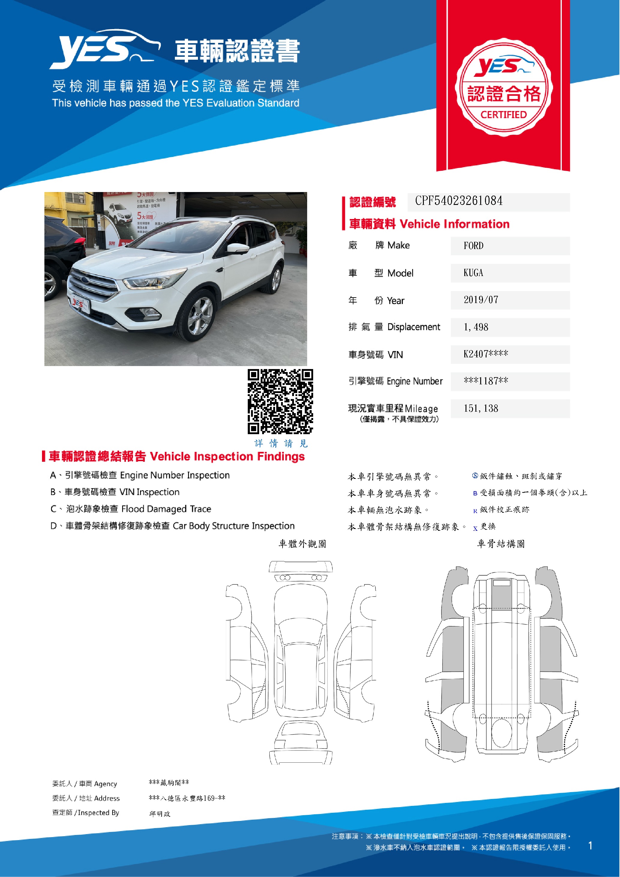 本車已由YES專業查定師完成 153 項檢測