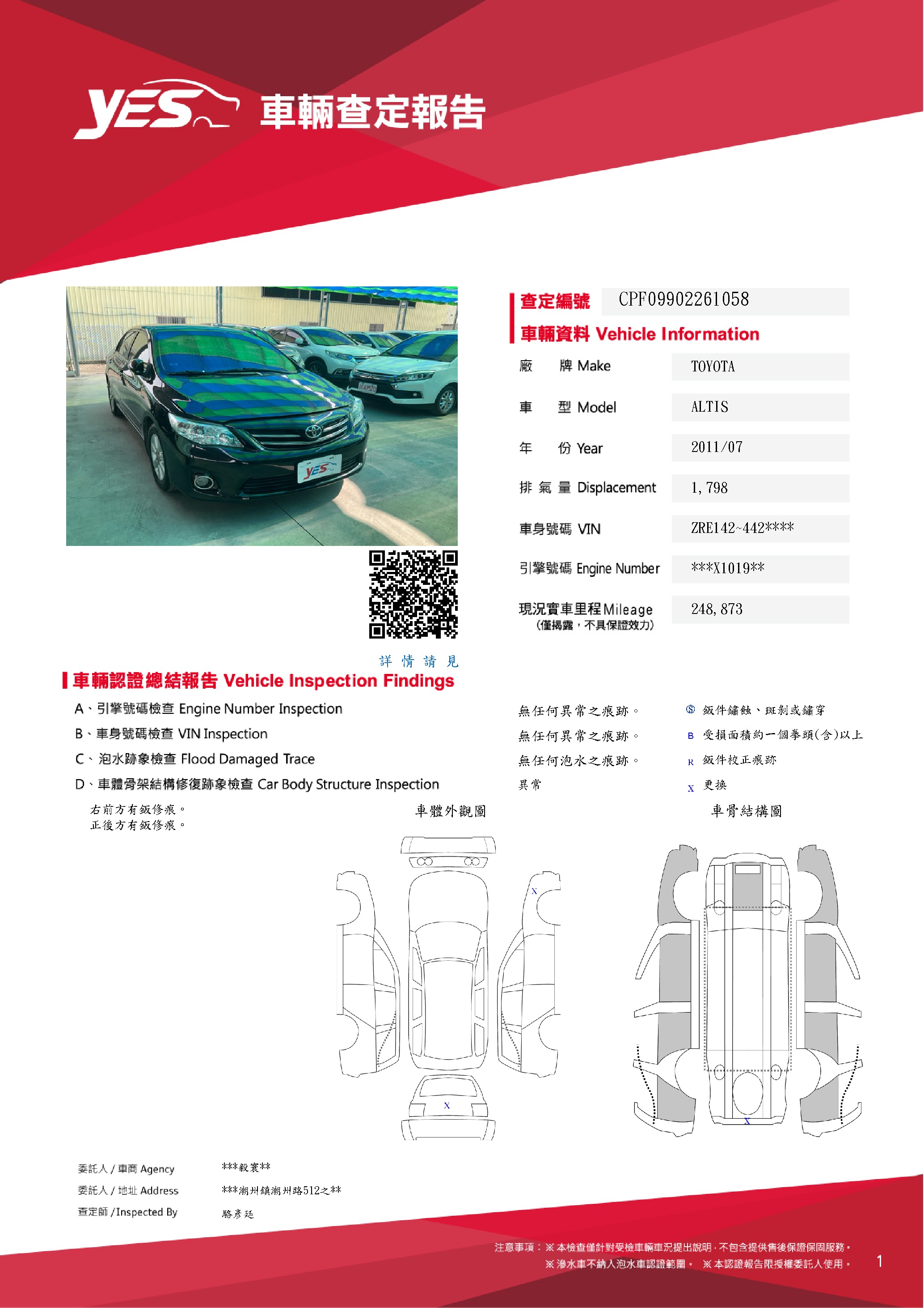 本車已由YES專業查定師完成 153 項檢測