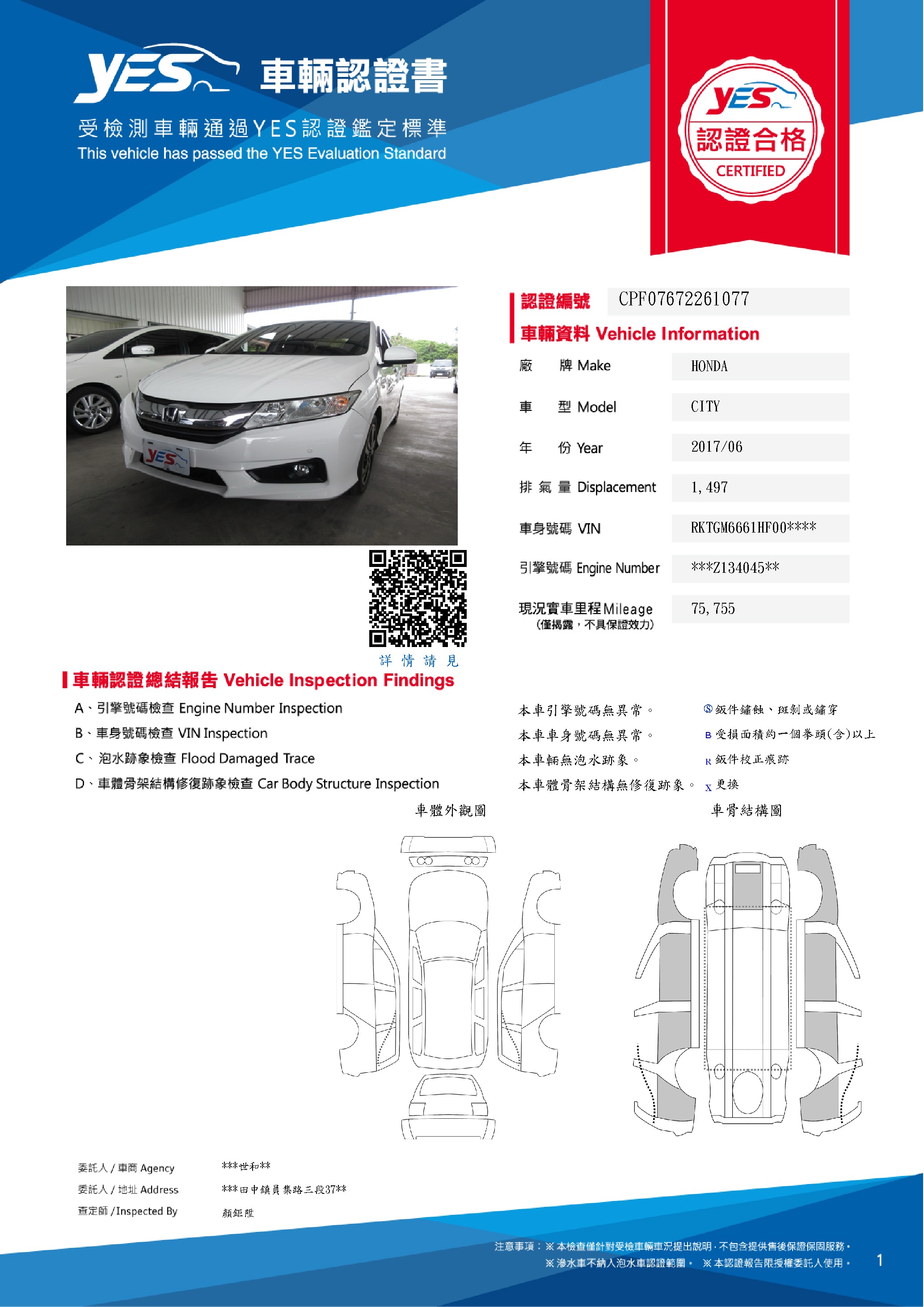 本車已由YES專業查定師完成 153 項檢測