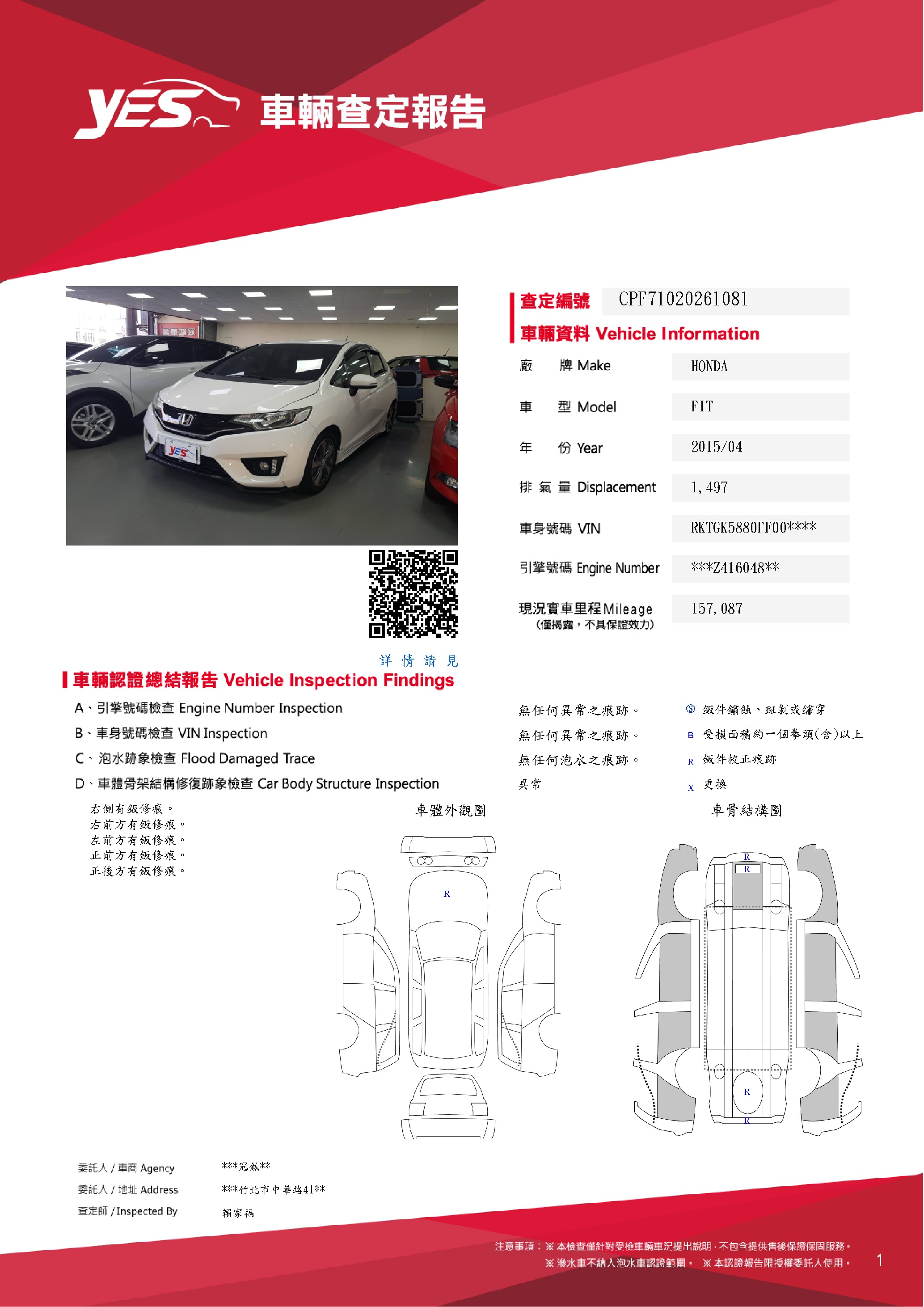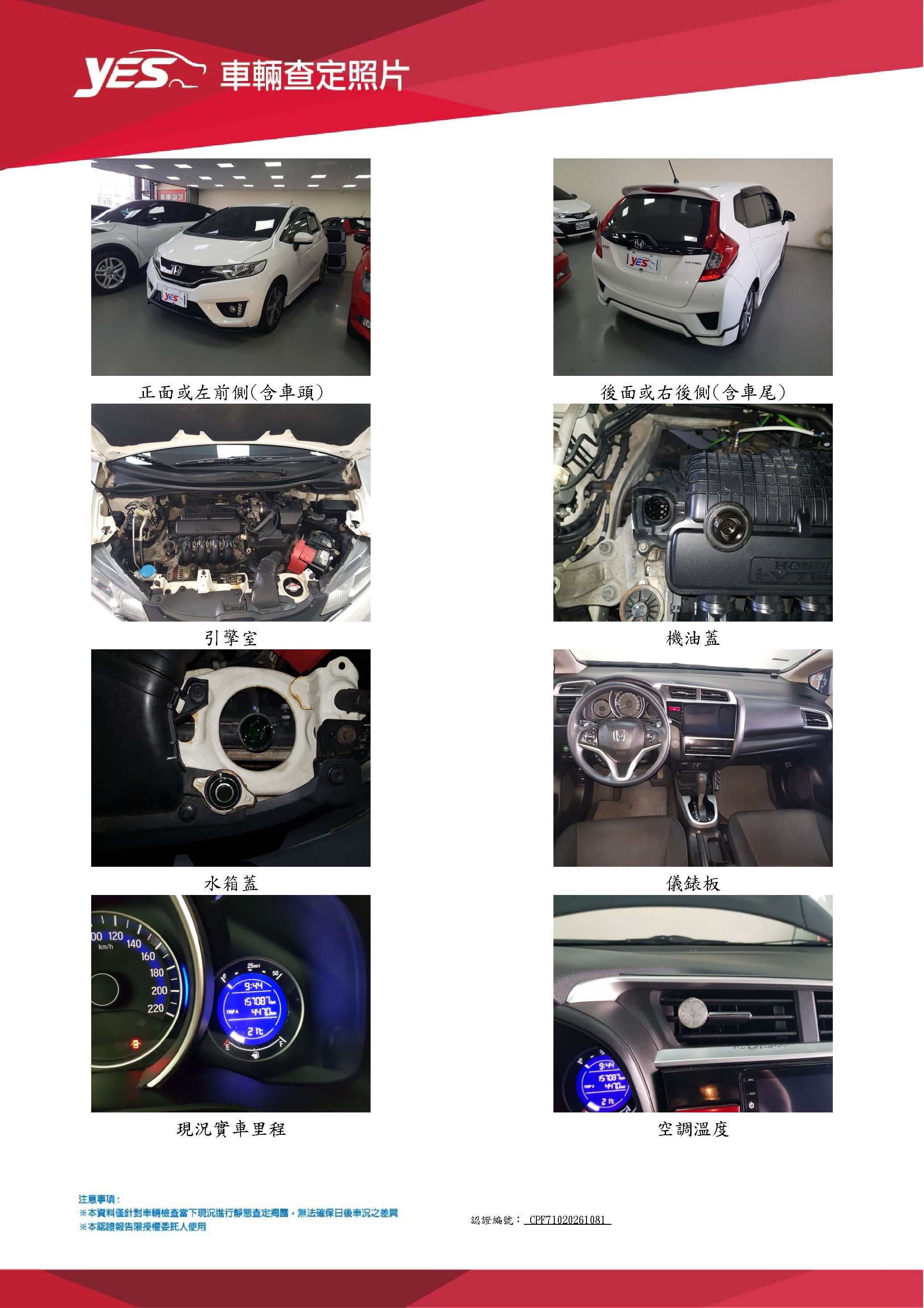 本車已由YES專業查定師完成 153 項檢測