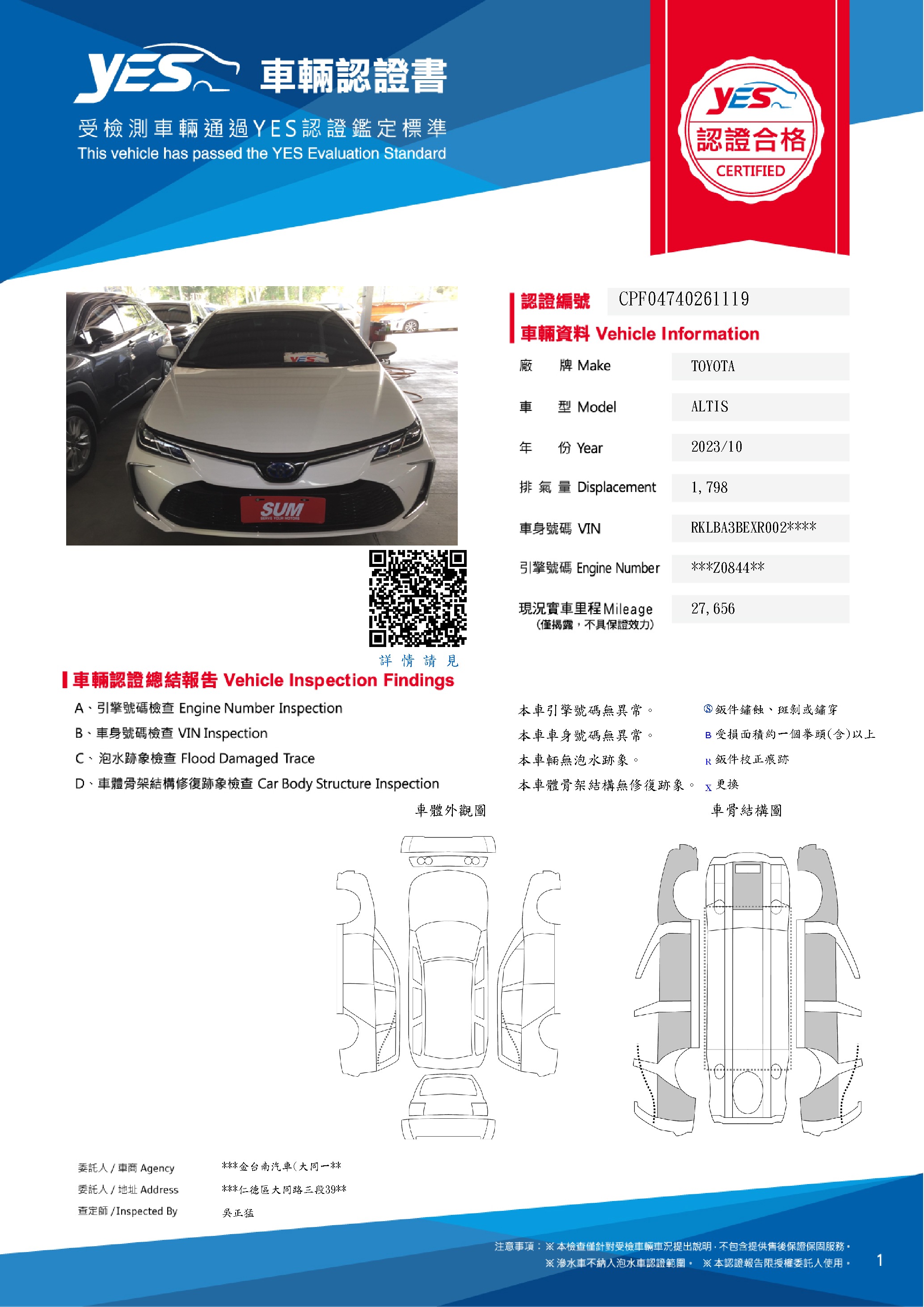 本車已由YES專業查定師完成 153 項檢測