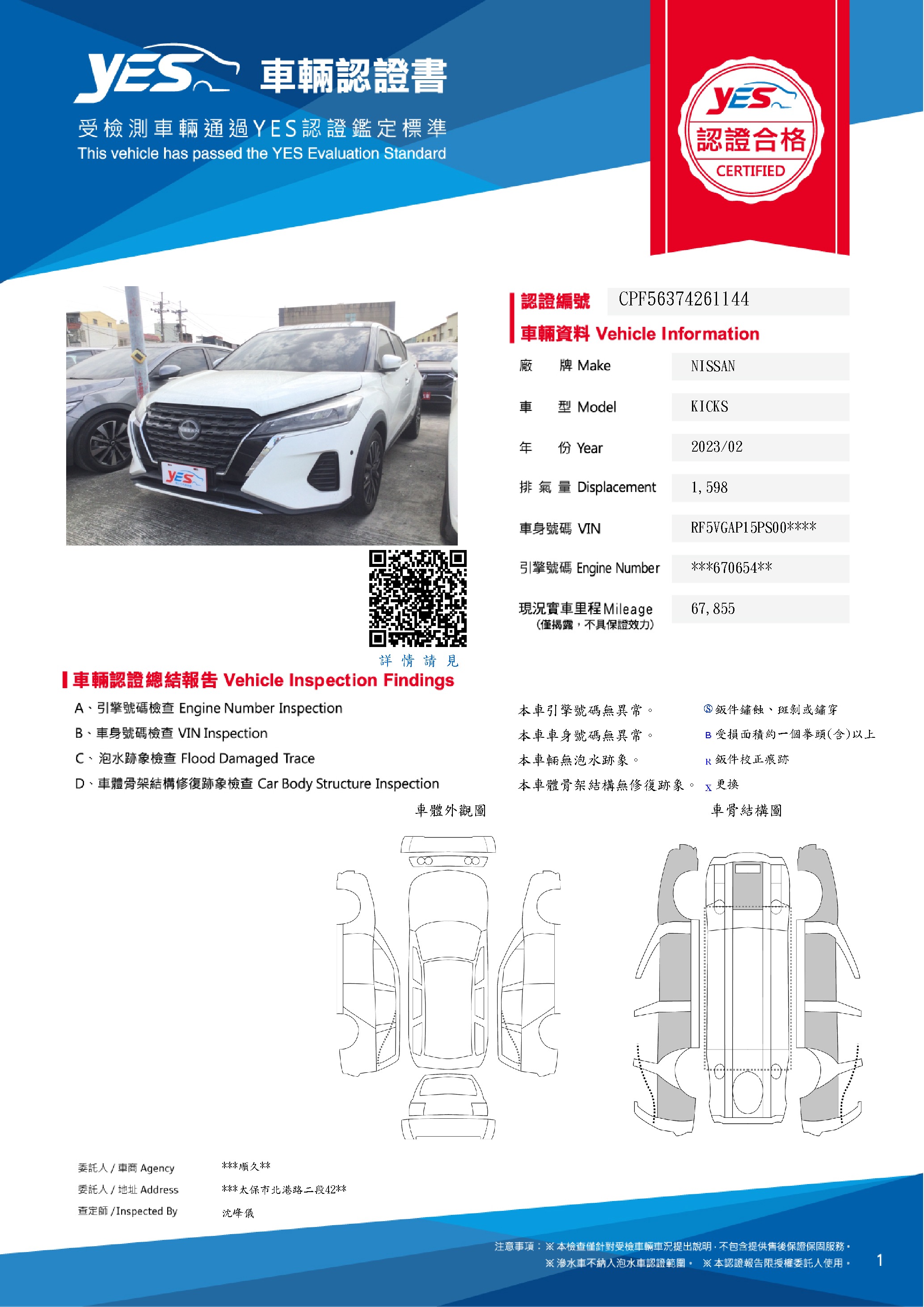本車已由YES專業查定師完成 153 項檢測