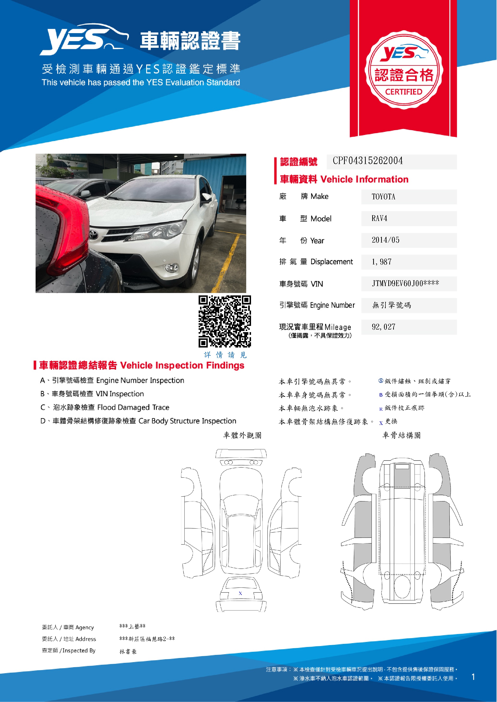本車已由YES專業查定師完成 153 項檢測