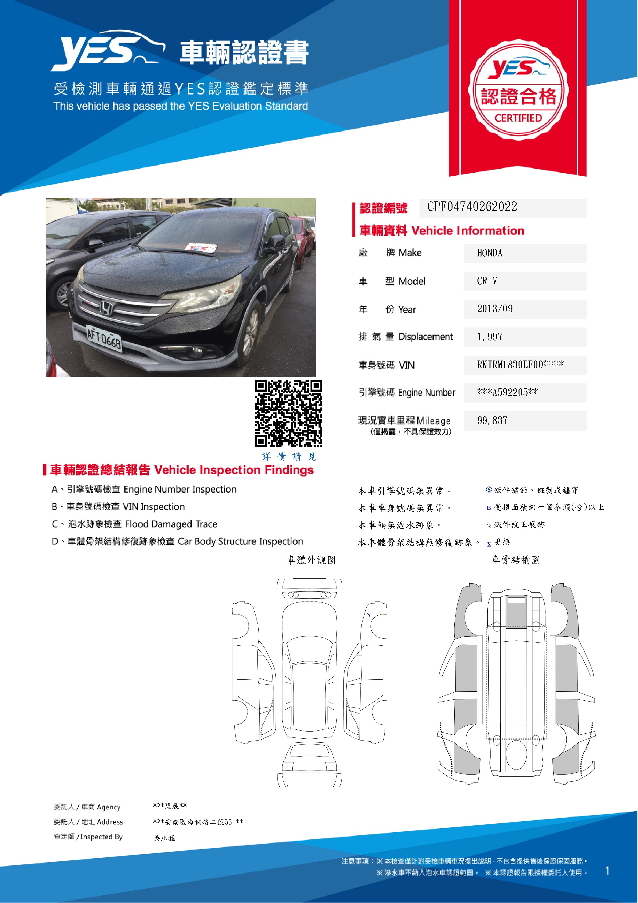 本車已由YES專業查定師完成 153 項檢測