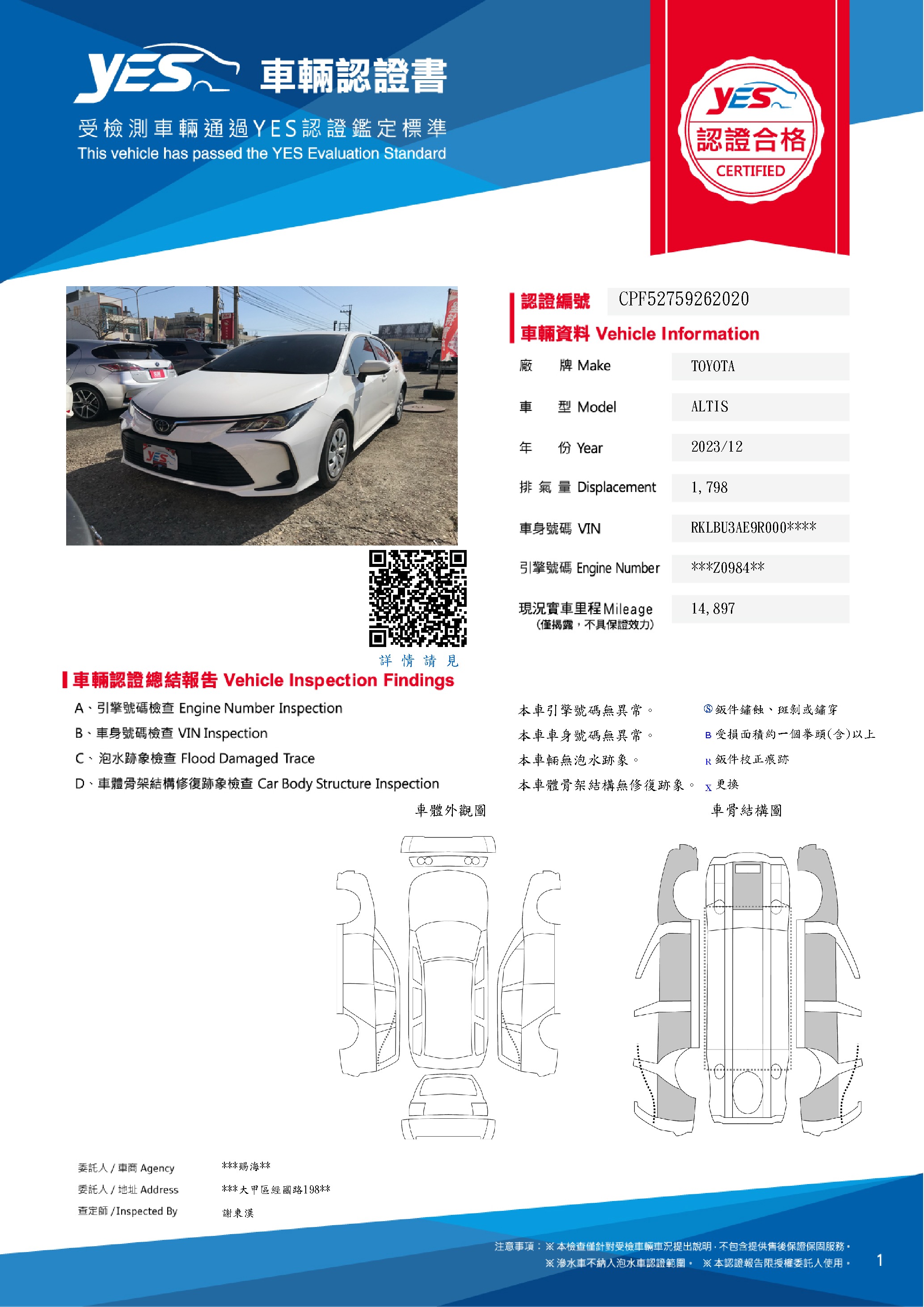 本車已由YES專業查定師完成 153 項檢測
