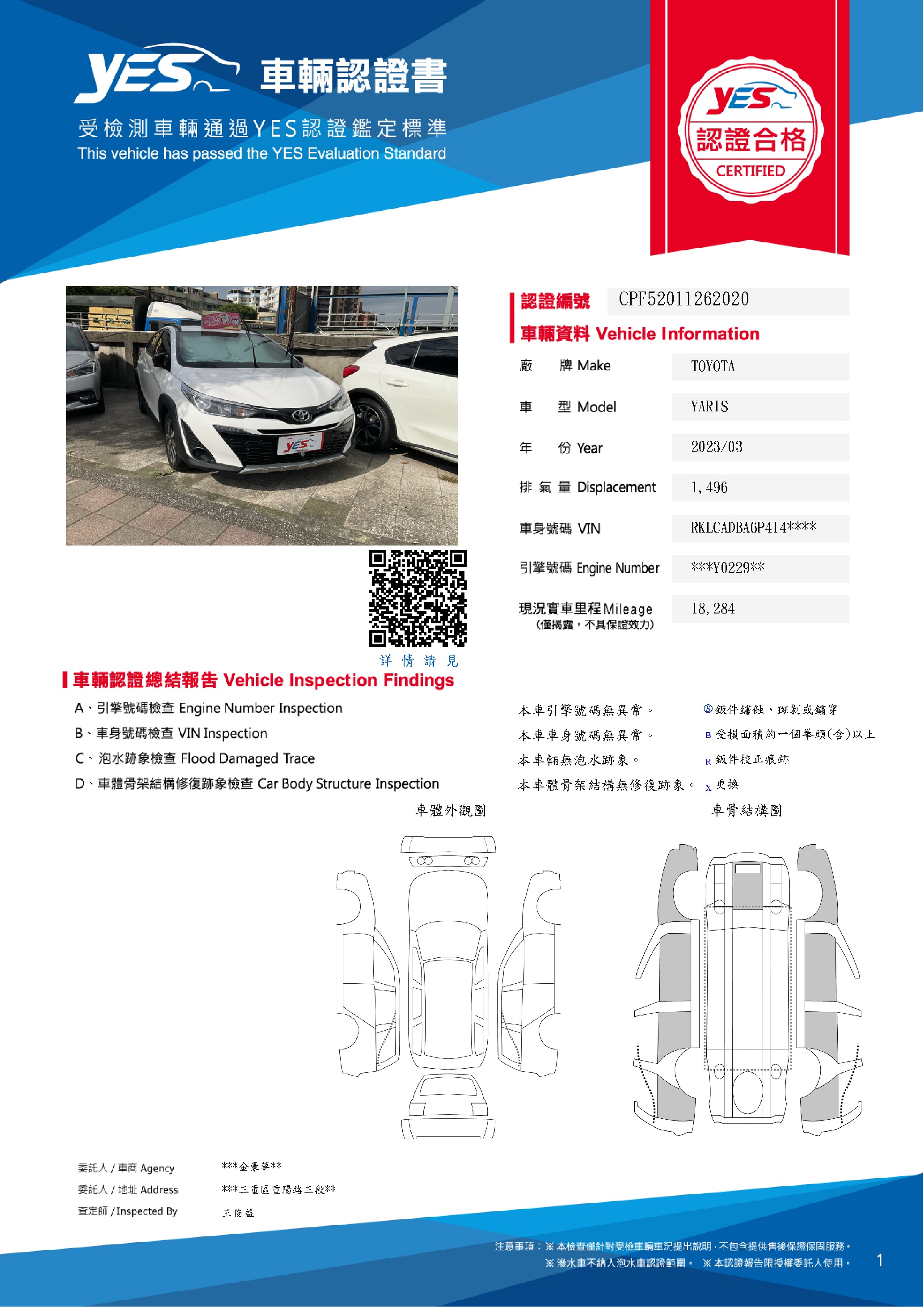 本車已由YES專業查定師完成 153 項檢測