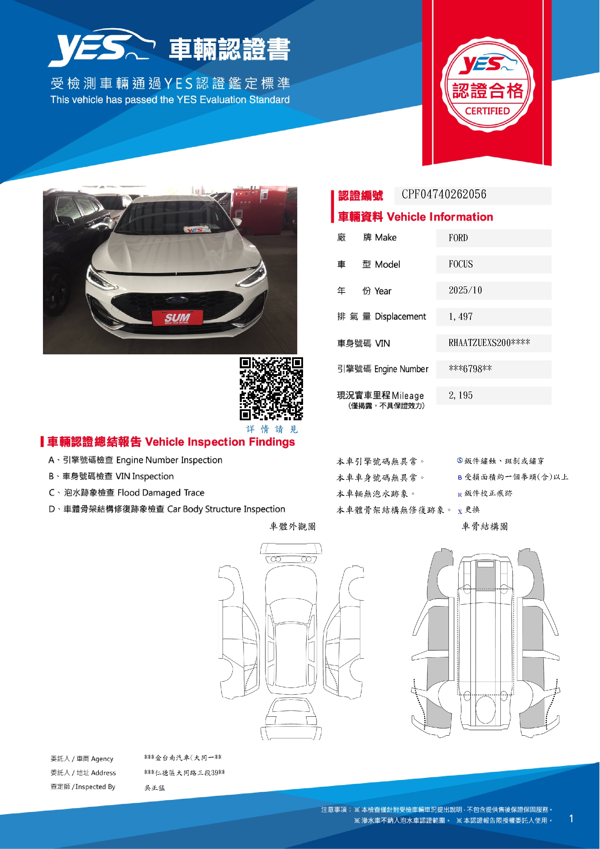 本車已由YES專業查定師完成 153 項檢測