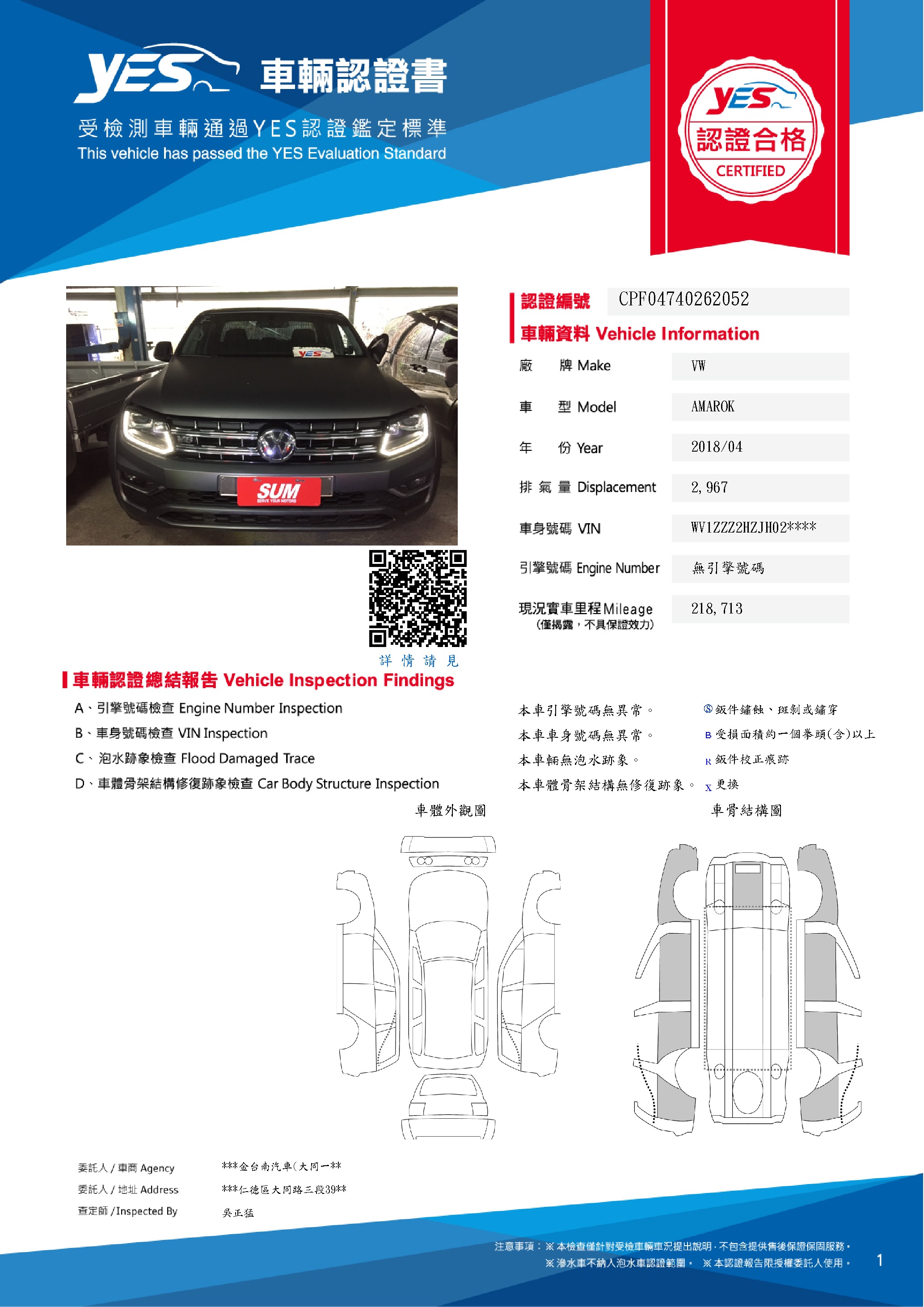 本車已由YES專業查定師完成 153 項檢測