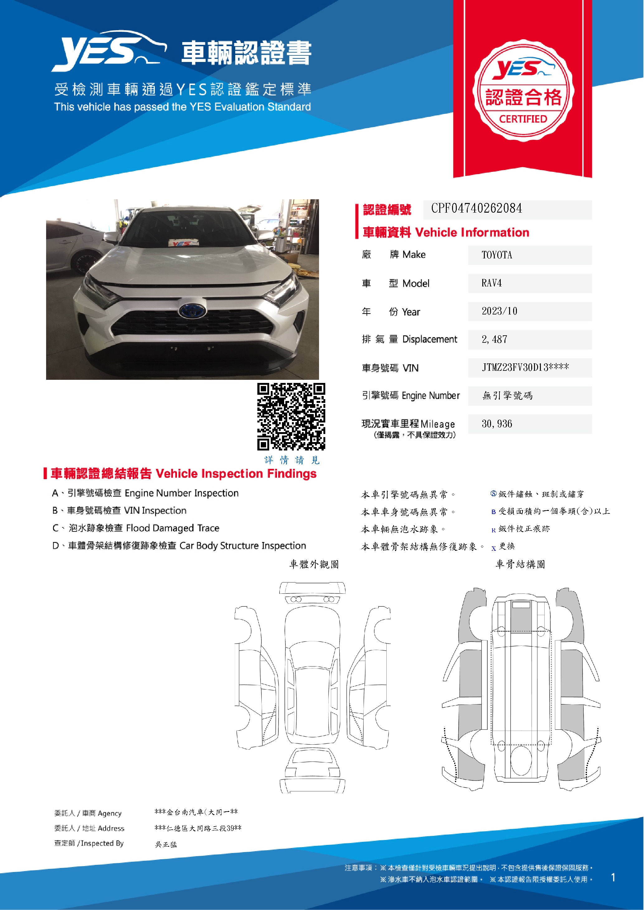 本車已由YES專業查定師完成 153 項檢測