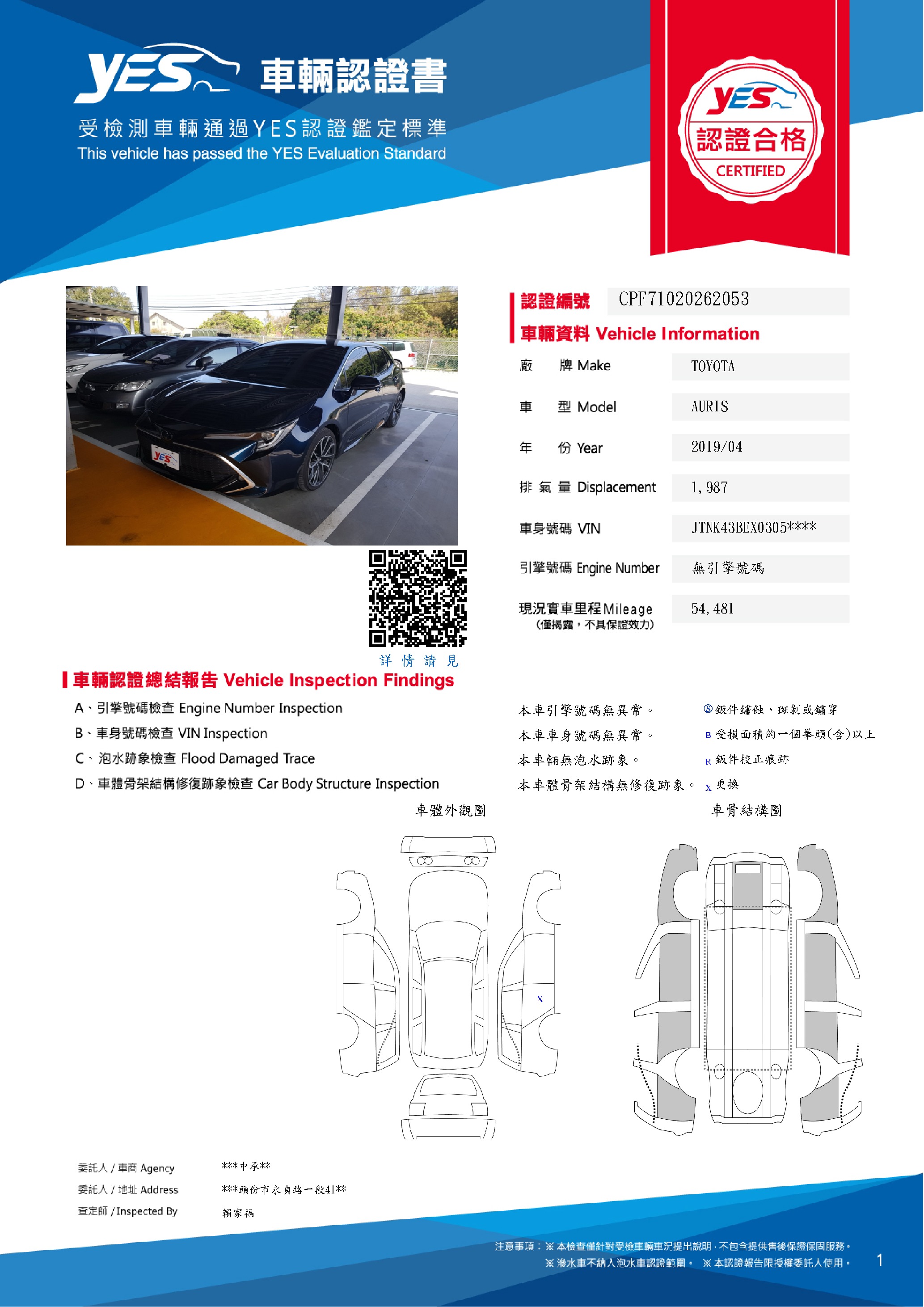 本車已由YES專業查定師完成 153 項檢測