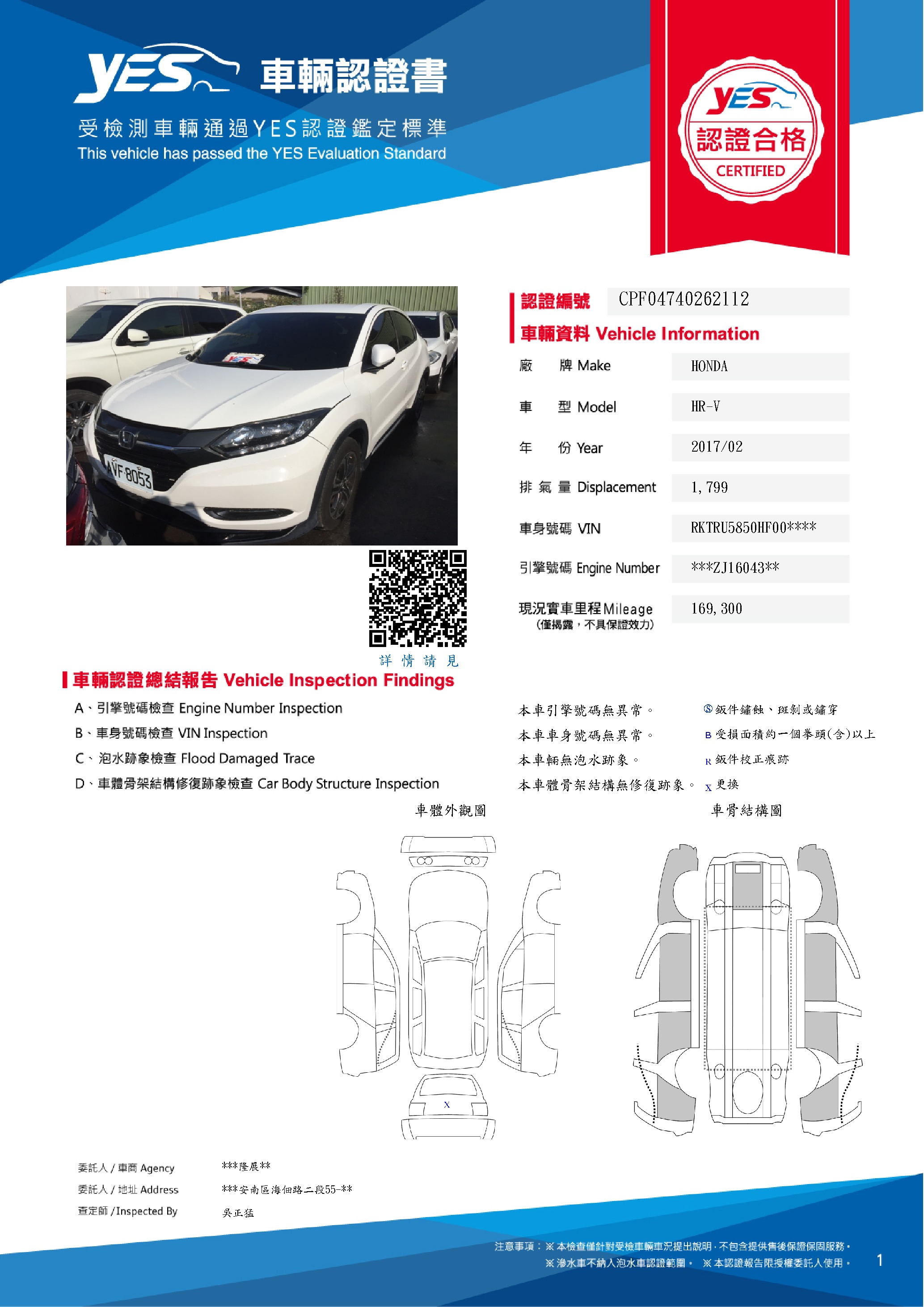 本車已由YES專業查定師完成 153 項檢測