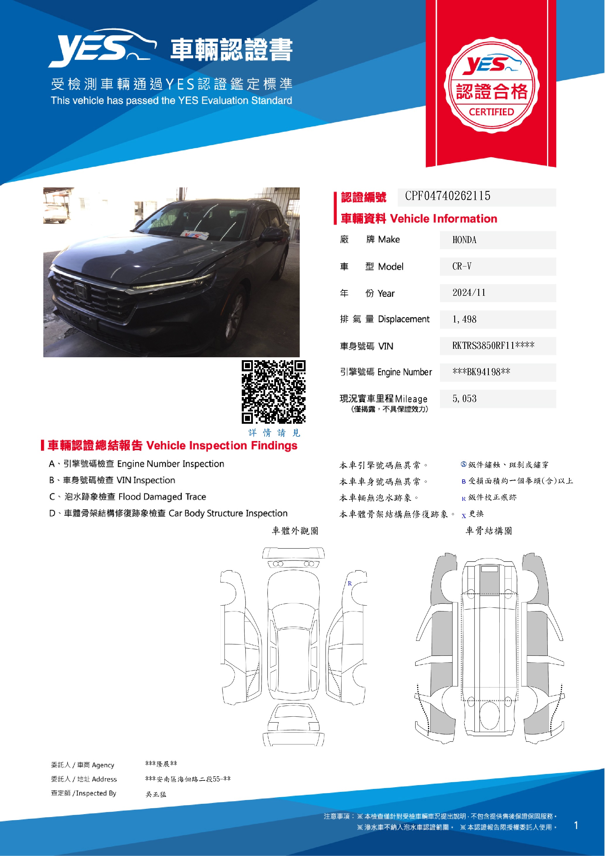 本車已由YES專業查定師完成 153 項檢測