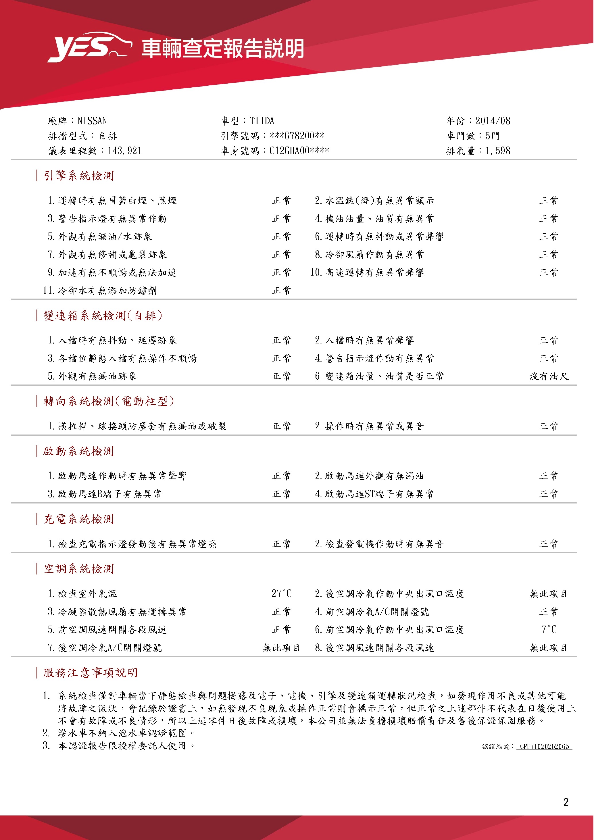 本車已由YES專業查定師完成 153 項檢測