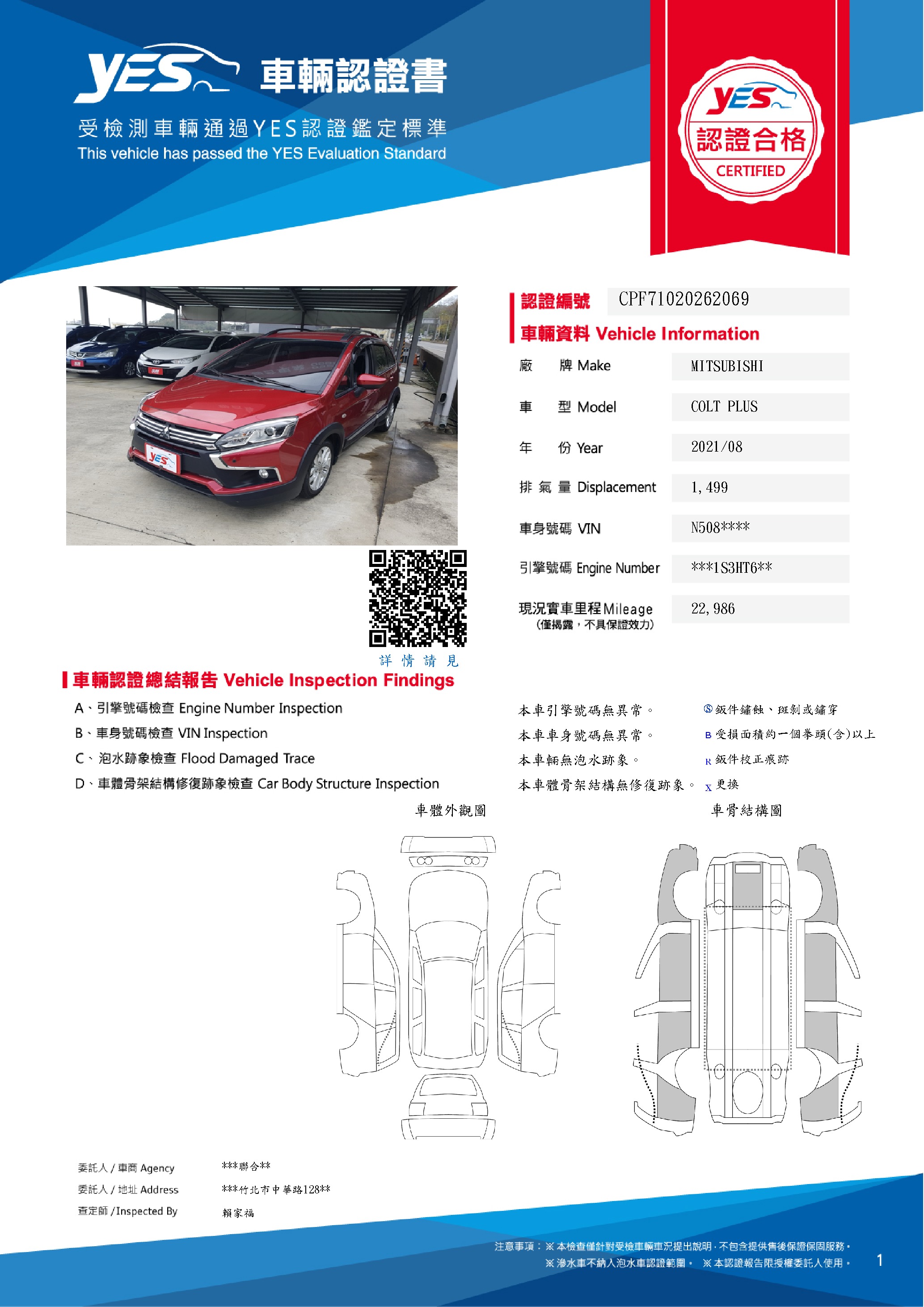 本車已由YES專業查定師完成 153 項檢測