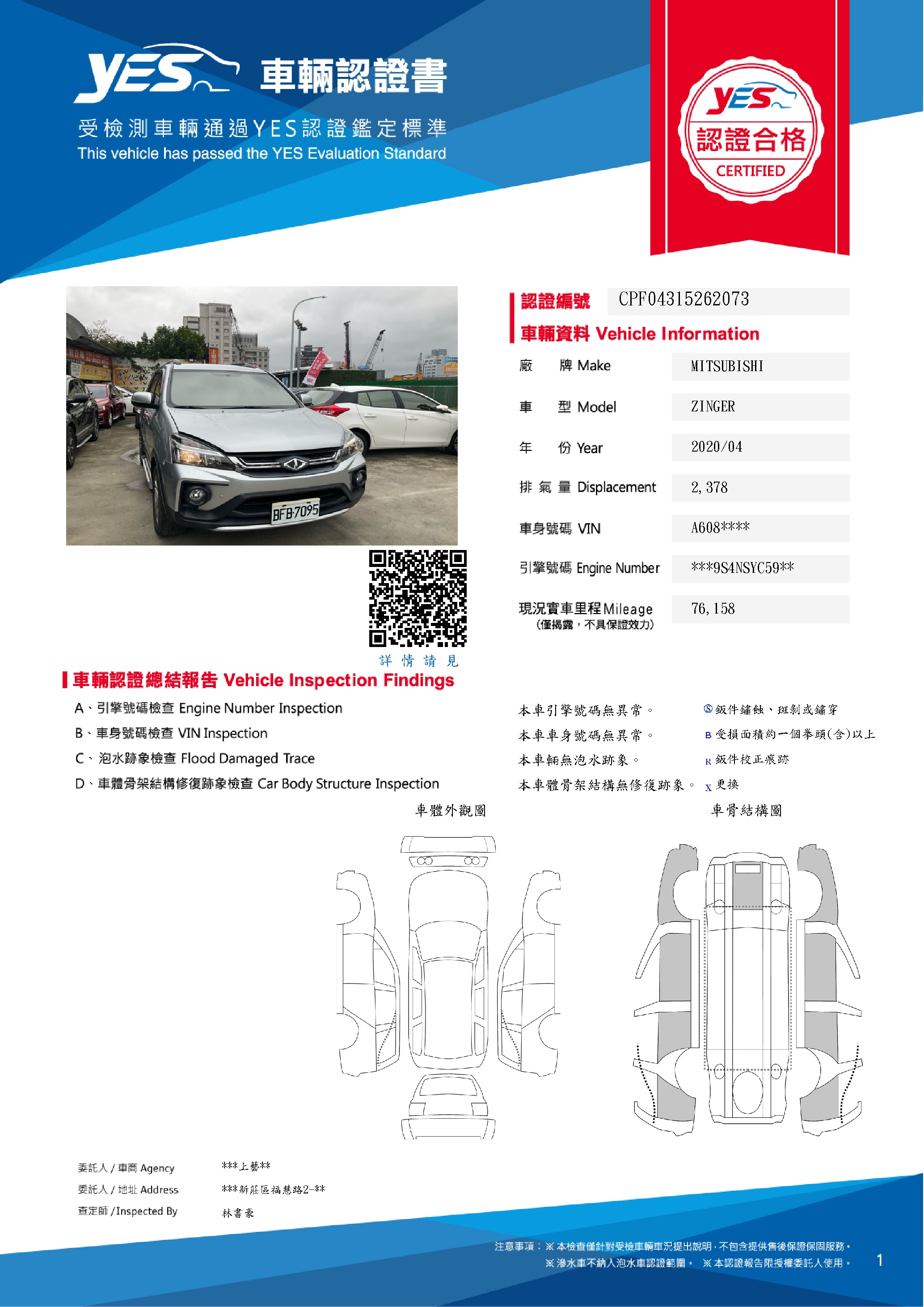 本車已由YES專業查定師完成 153 項檢測
