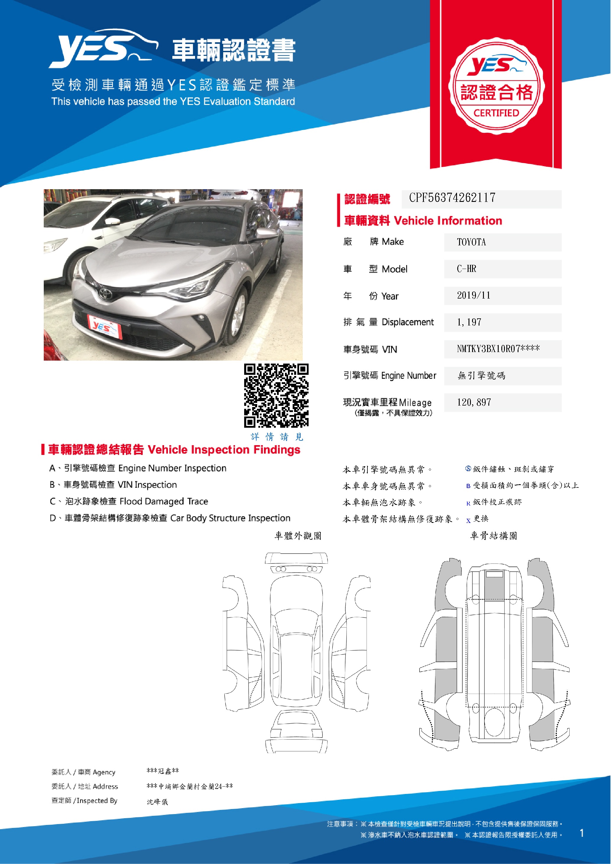 本車已由YES專業查定師完成 153 項檢測