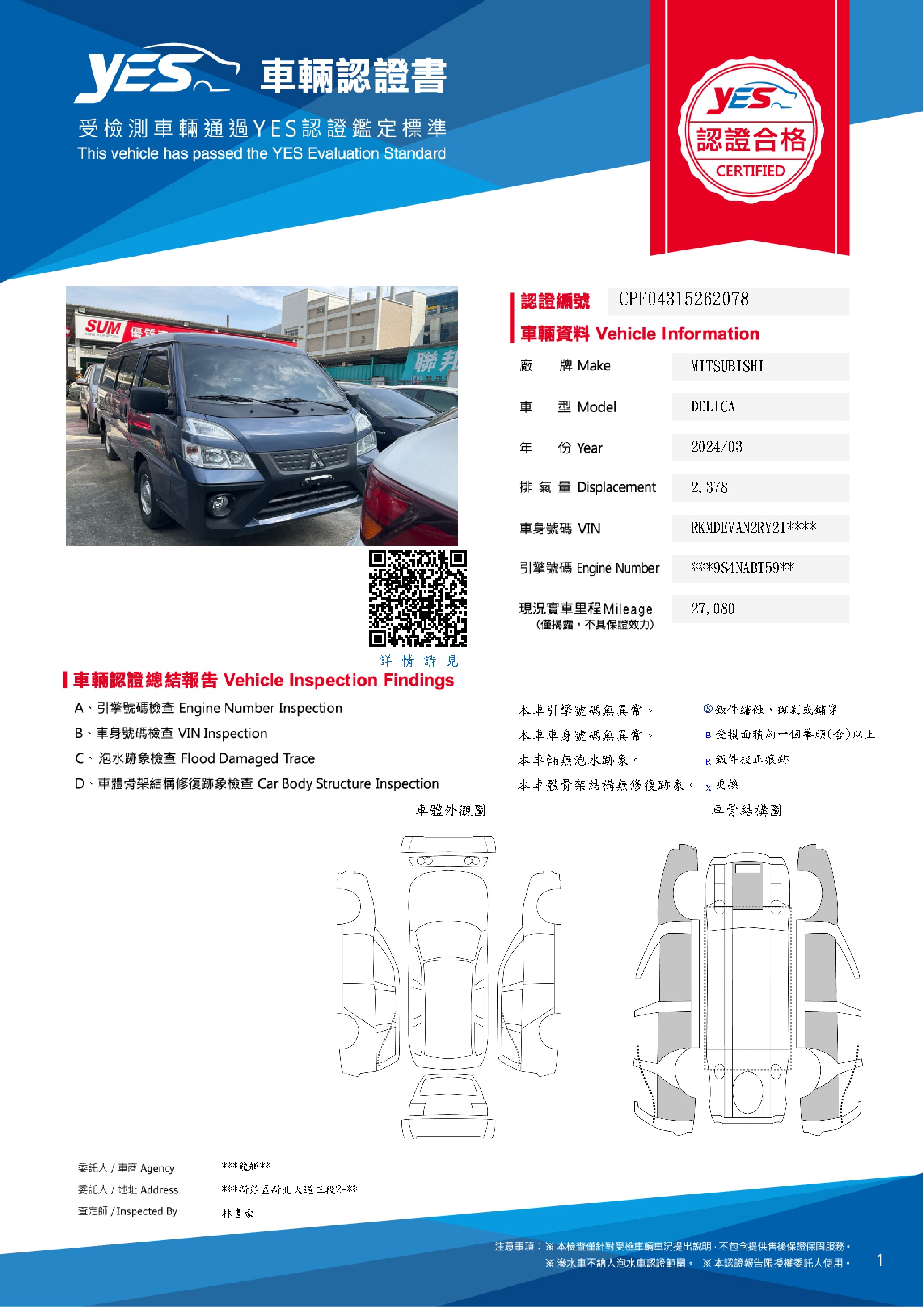 本車已由YES專業查定師完成 153 項檢測