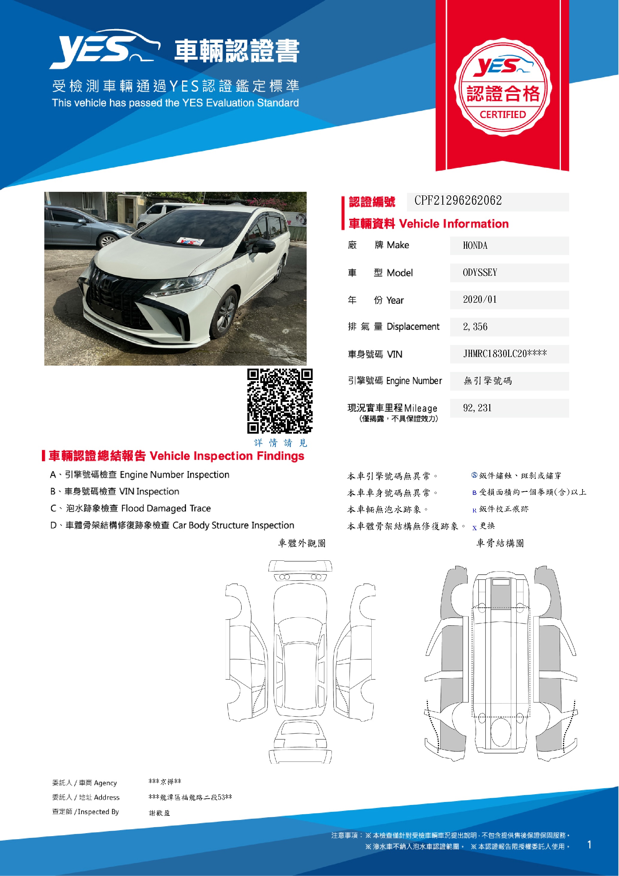 本車已由YES專業查定師完成 153 項檢測