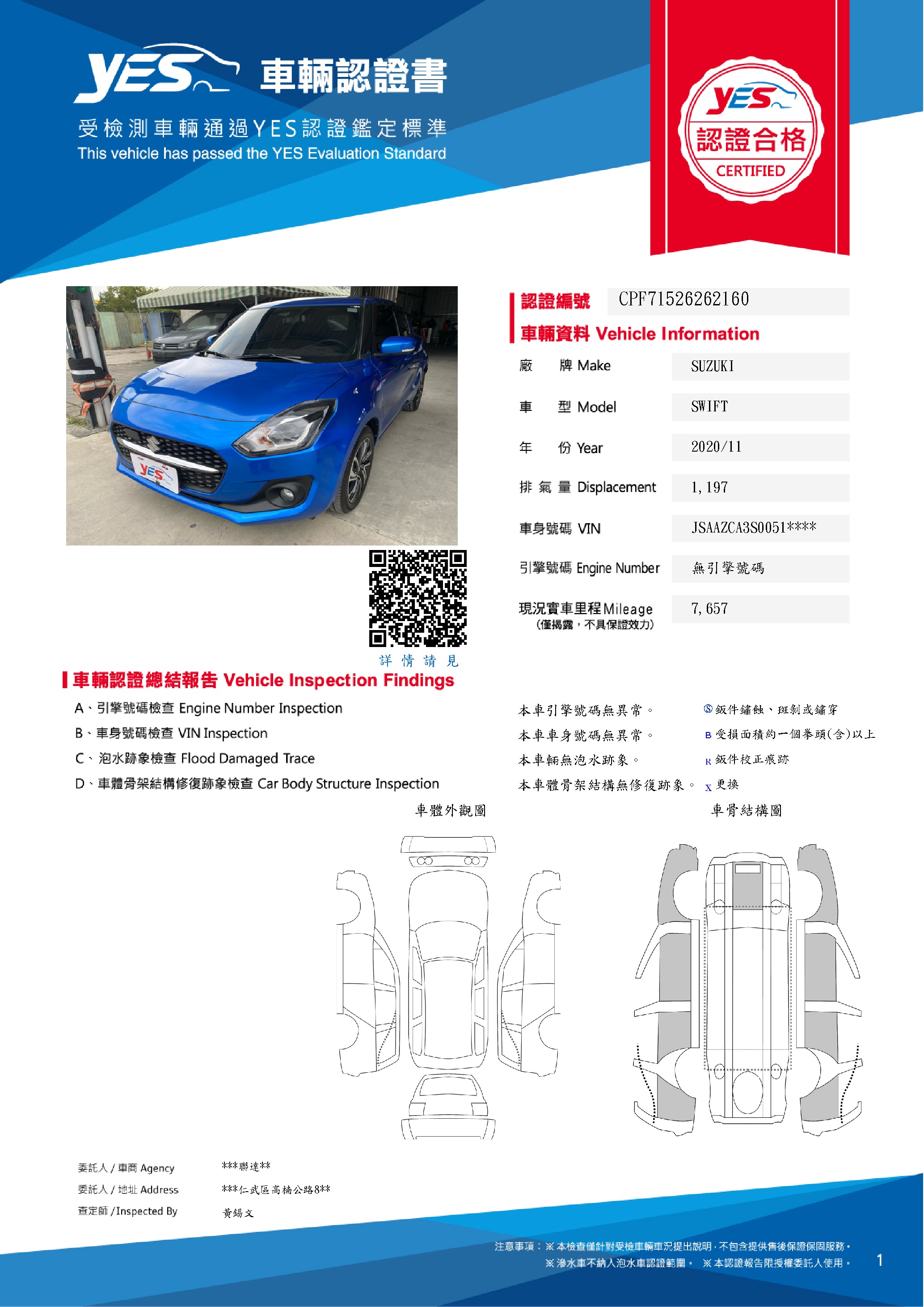 本車已由YES專業查定師完成 153 項檢測