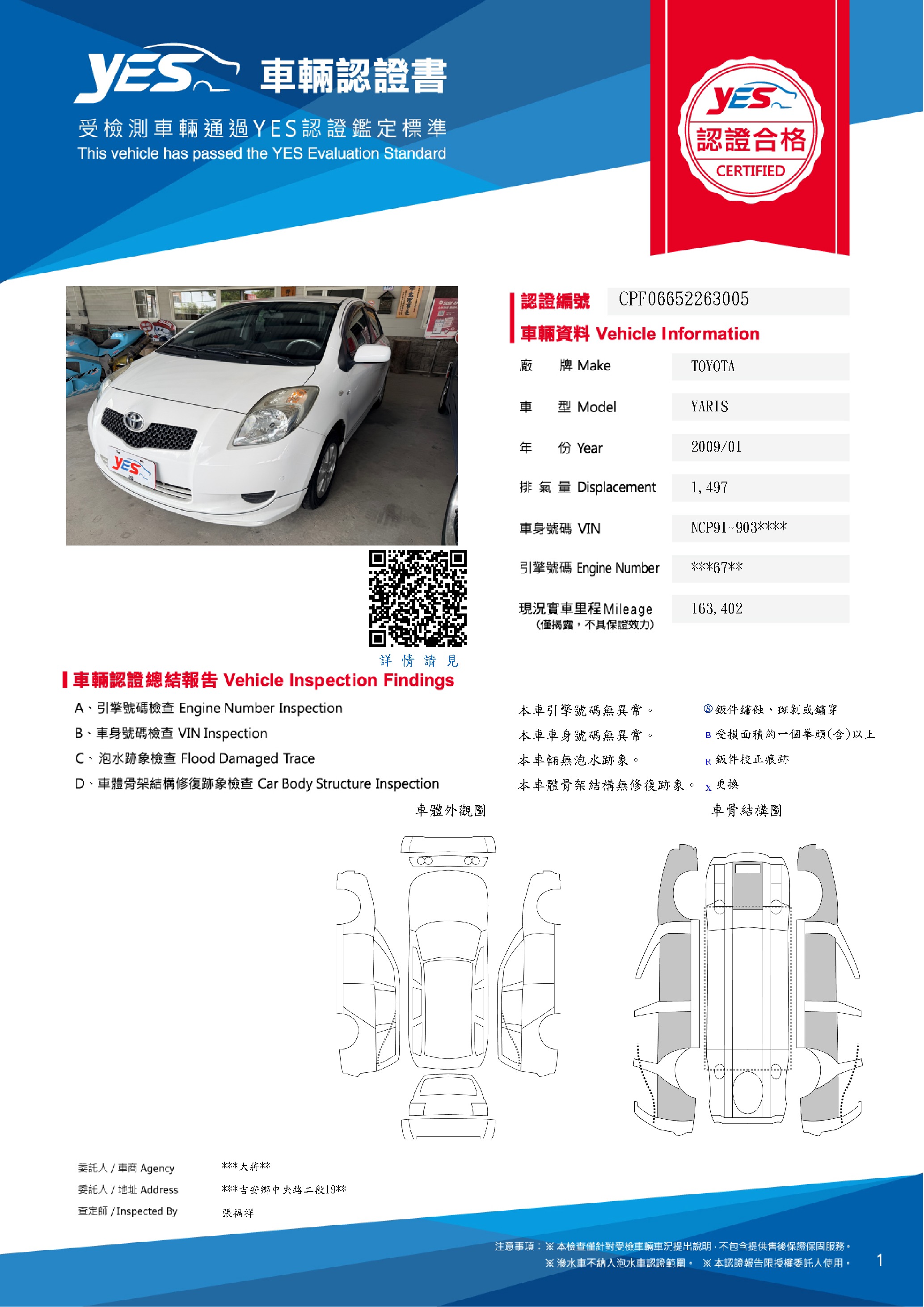 本車已由YES專業查定師完成 153 項檢測