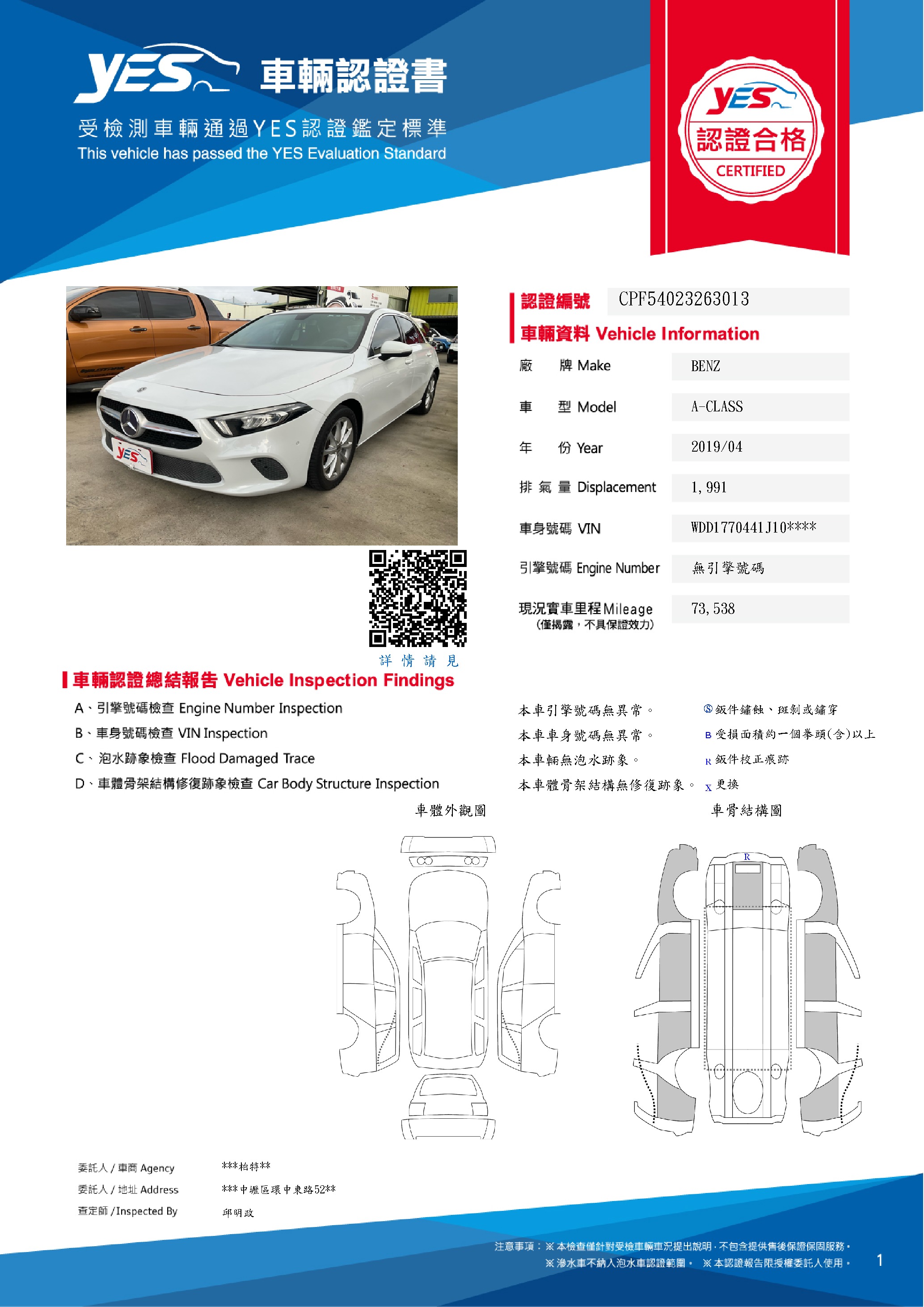 本車已由YES專業查定師完成 153 項檢測