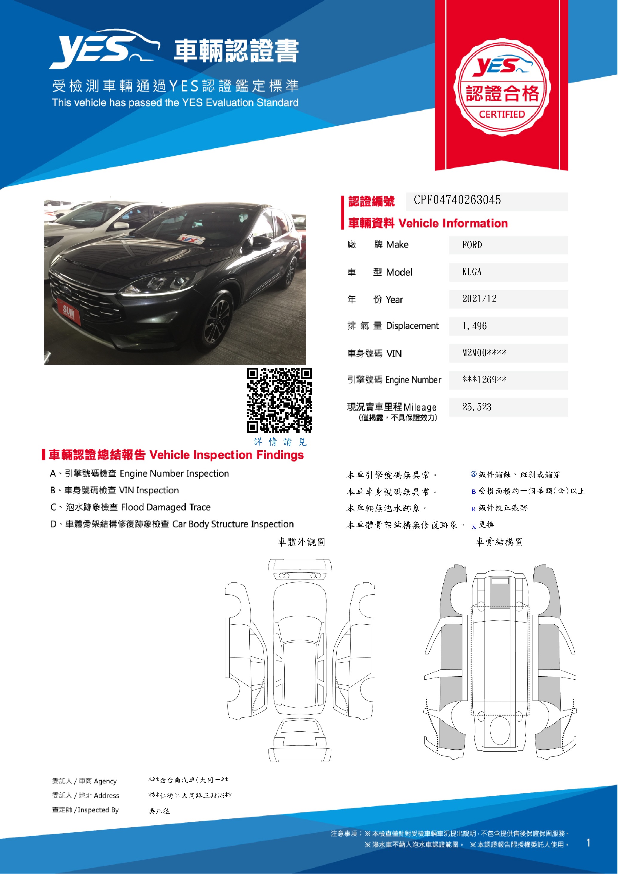 本車已由YES專業查定師完成 153 項檢測