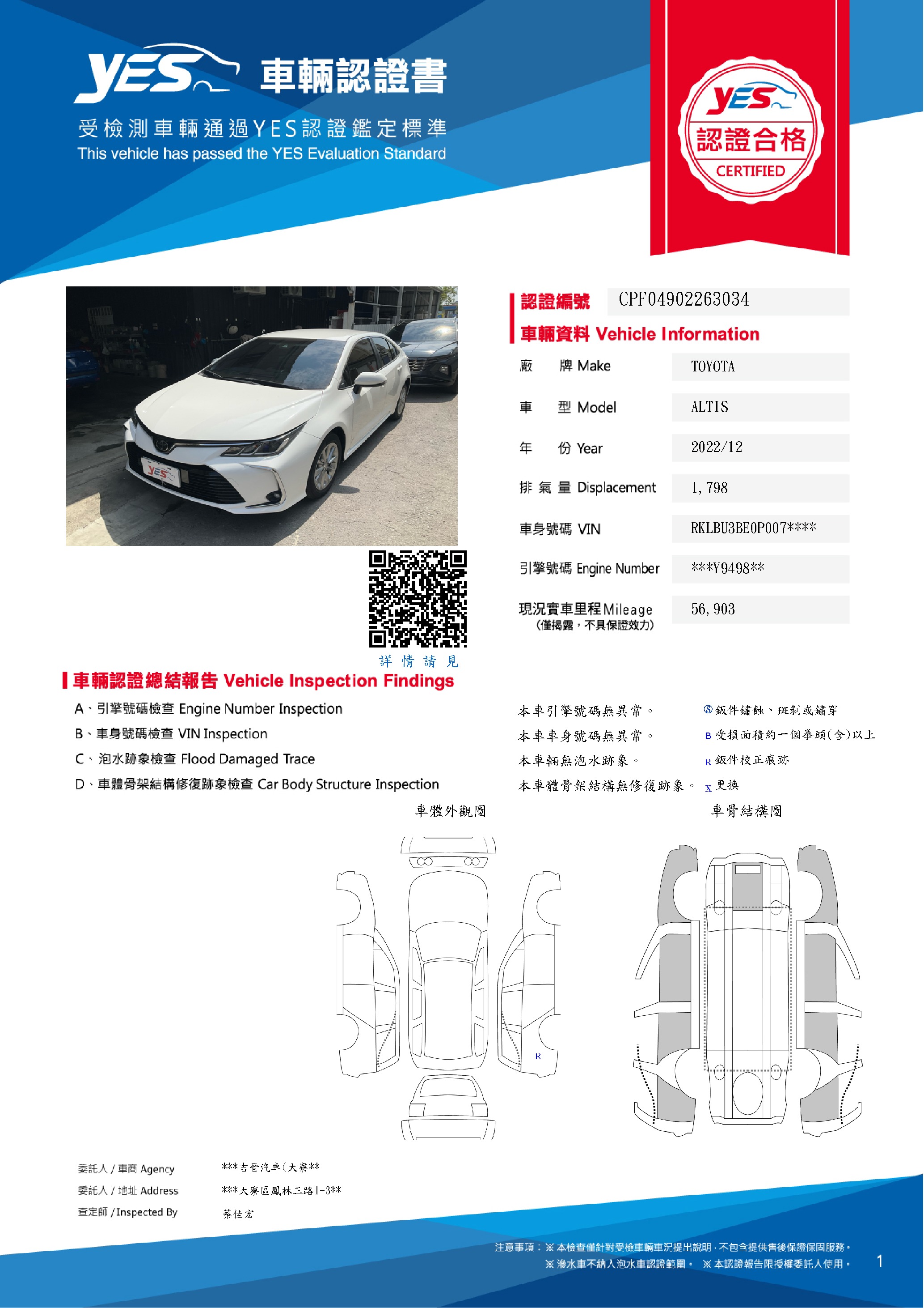 本車已由YES專業查定師完成 153 項檢測